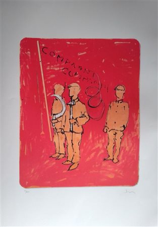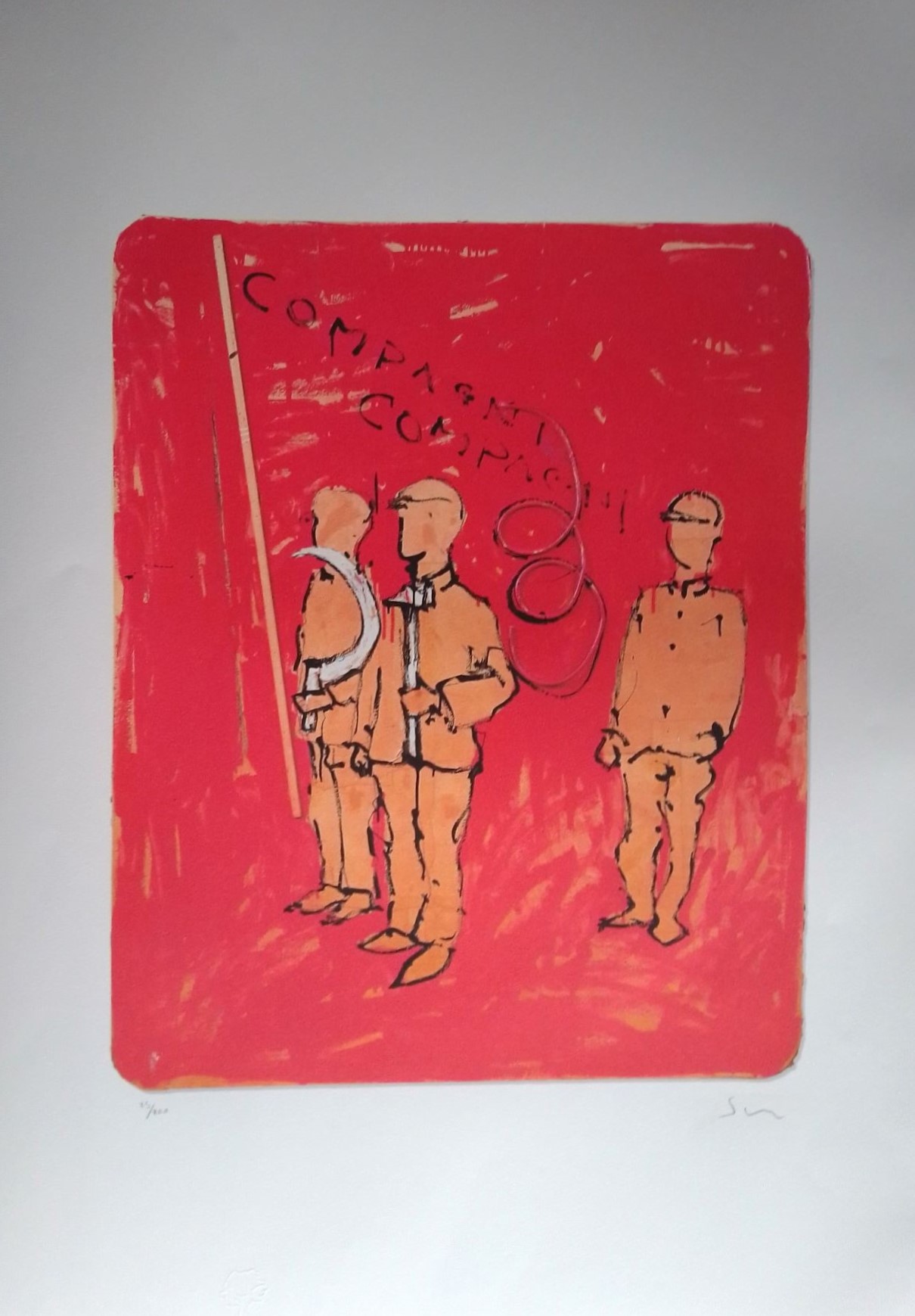 MARIO SCHIFANO (1934-1998) Litografia a 12 Colori CM 70X50 Carta Magnani Pescia Titolo -Compagni Comunisti- Firma e Tiratura a Matita al Fronte, Timbro a Secco, al Retro N. Serie della Fondazione Schifano