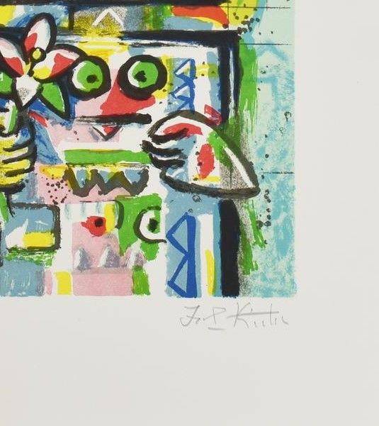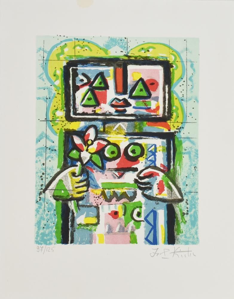 IBRAHIM KODRA (1918-2006) Serigrafia Cm 50X35 Titolo -Il Totem Geometrico- Firma a Matita in Basso a Destra, Tiratura in Basso a Sinistra, Certificato Accluso