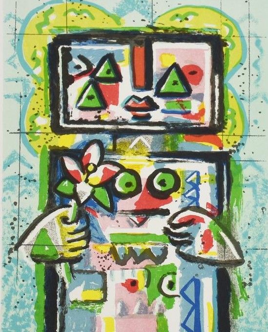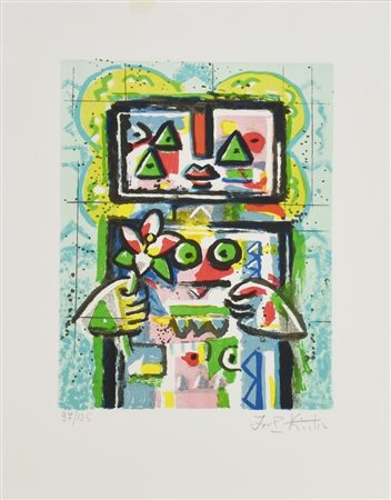 IBRAHIM KODRA (1918-2006) Serigrafia Cm 50X35 Titolo -Il Totem Geometrico-...