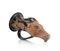 RHYTON APULO A FIGURE ROSSE IN TERRACOTTA VERNICIATA, IV SECOLO A.C., bicchiere cilindrico con labbro estroflesso piatto, corpo a testa di capriolo, ansa a nastro, decoro a figure e motivi fogliacei stilizzati; sbeccature, fessura e usure.