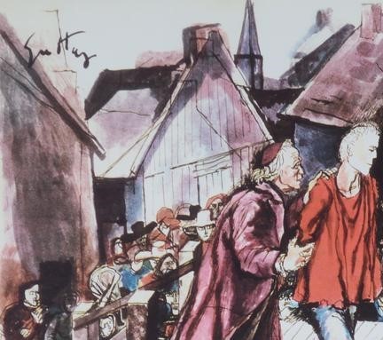 RENATO GUTTUSO (1911-1987) Fotolitografia a 24 Colori CM 56X40 Titolo -Il Patibolo-, Firma Su Lastra in Alto a Sinistra e Tiratura a Matita in Basso a Sinistra, Certificato Accluso