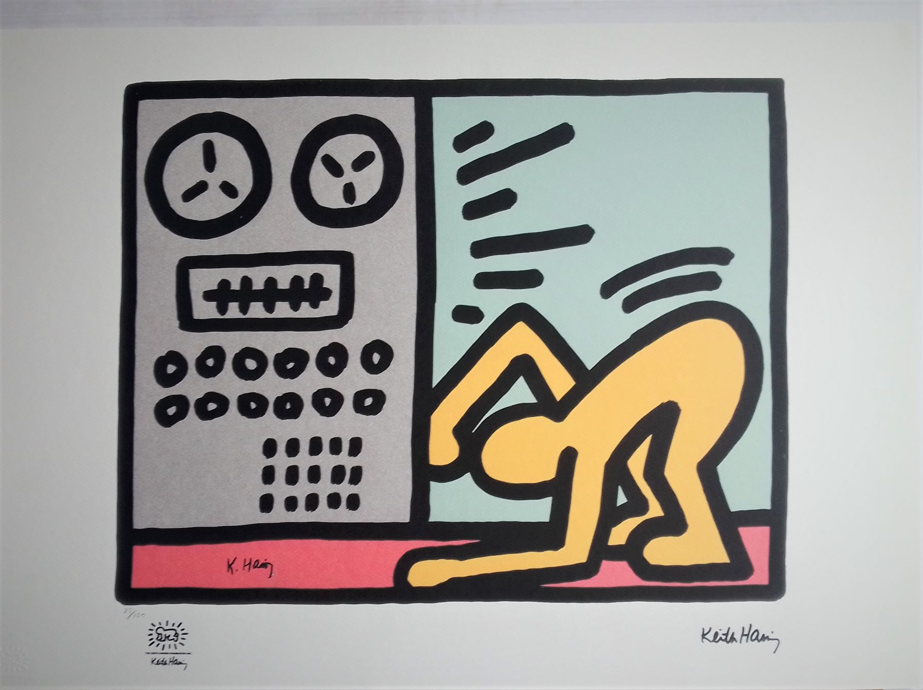 KEITH HARING (1958-1990) Litografia CM 70X50 su Carta Francese, Firma in Lastra e Tiratura a Matita- al Fronte Firma per Autentica K. H. Fundation The K. H. Show Edit. Skira Timbro Secco K.H. Certificato Accluso