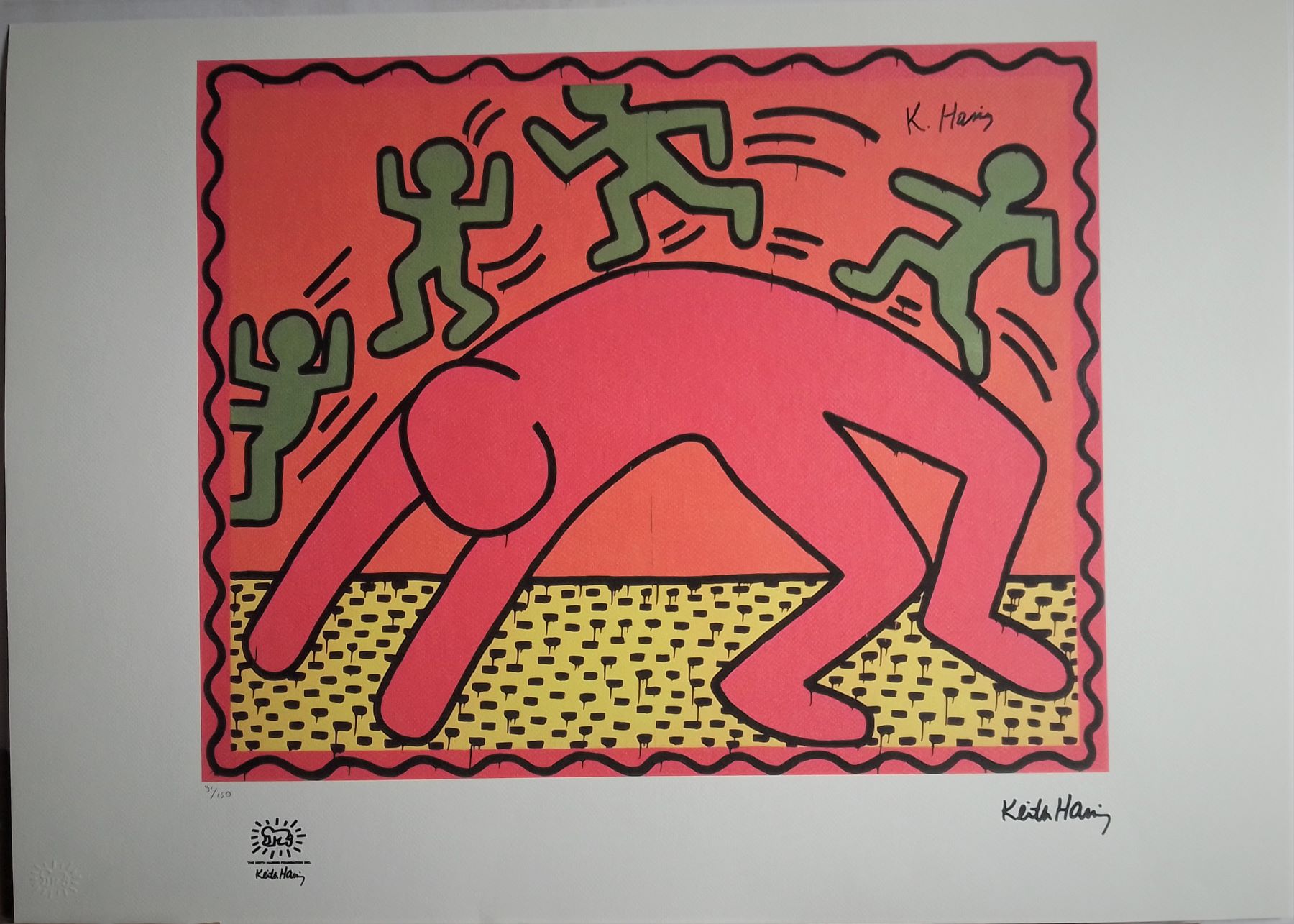 KEITH HARING (1958-1990) Litografia CM 70X50 su Carta Francese, Firma in Lastra Tiratura a Matita al Fronte, Firma per Autentica K. H. Fundation The K. H. Show Edit. Skira Timbro Secco K.H. Certificato Accluso