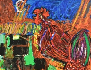BRUNO CASSINARI (1912-1992) Litografia a Colori Titolo - Il Canto del Gallo- CM 50X70 Firma e Tiratura al Fronte a Matita P.A. Senza Cornice