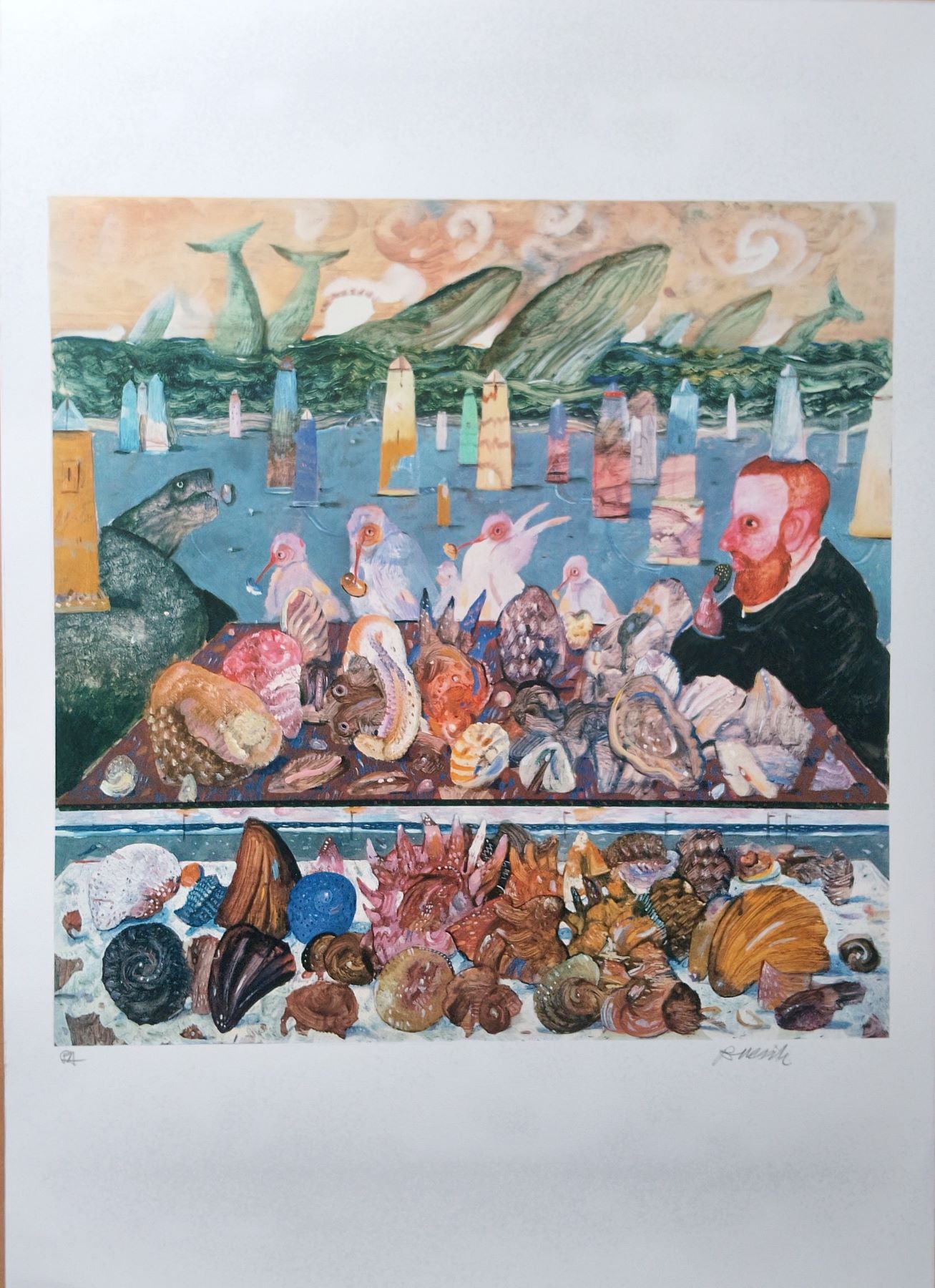 ANTONIO POSSENTI (1933-2016) Litografia CM 70X50 Titolo-Viventi dei Mari- Al Fronte Firma e Tiratura a Matita, senza Cornice