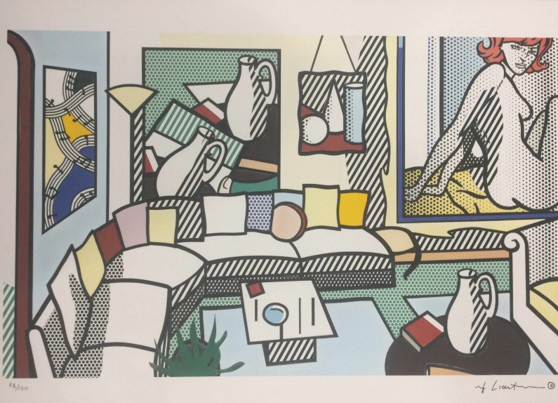 ROY LICHTENSTEIN (1923-1997) Litografia su Carta Arches France CM 35X50, Firma al Fronte in Lastra x Autentica della Fondazione eTiratura a Matita, Licenza Castelli e Timbro a Secco, Certificato
