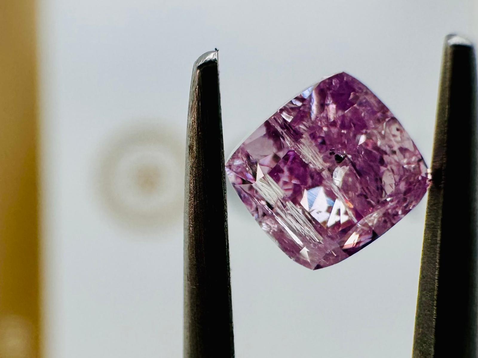 DIAMANTE NATURAL POLISHED 0,62 CT ROSA VIOLA INTENSO - TAGLIO CUSCINO - CERTIFICATO GIA - EY40707