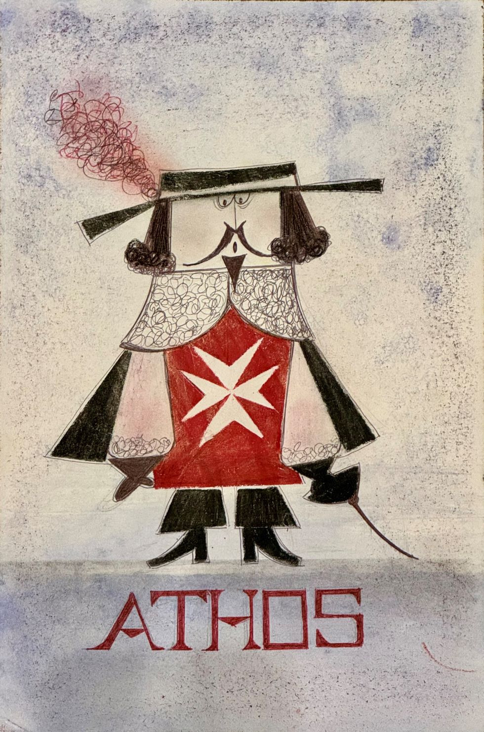 PASCALI PINO Bari 1935 - Roma 1968 "Athos" Tecnica mista su cartone pressato cm 19,7x29,9. Intitolata sul fronte in basso al centro. Al verso firma per provenienza a cura di Sandro Lodolo. Opera archiviata presso l'Archivio dell'Opera Grafica di Pino Pascali.