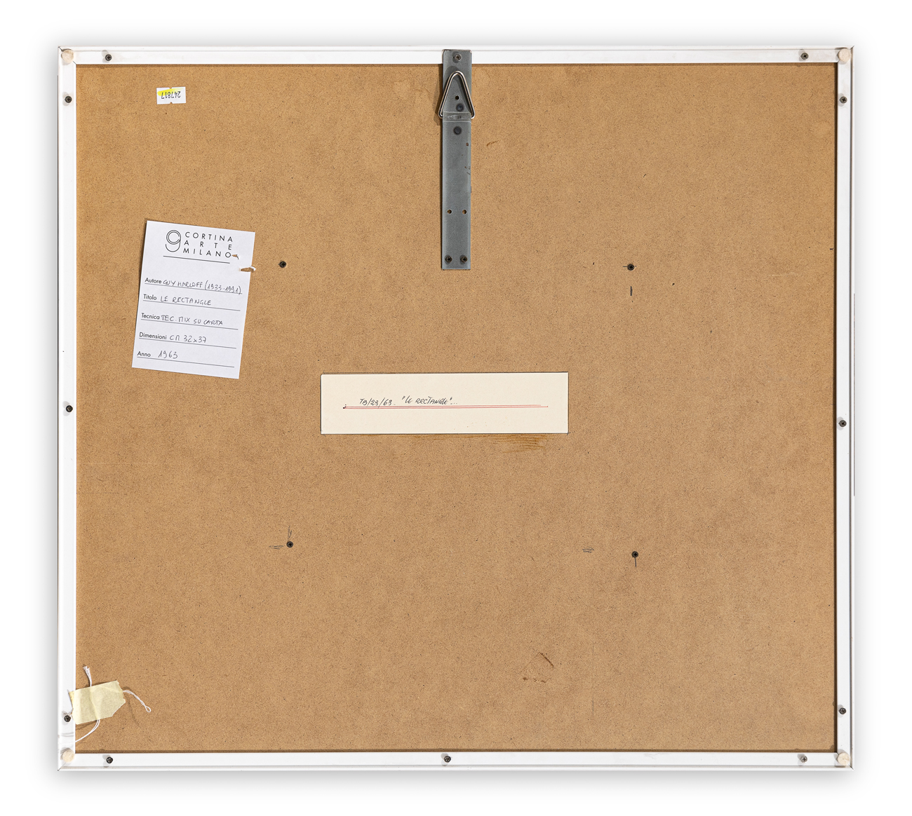 Etichetta della Galleria d'Arte Cortina (MI) al retro della tavola protettiva