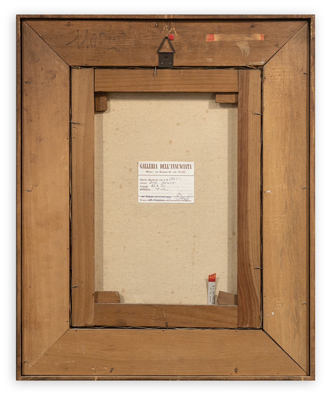 Etichetta della Galleria Annunciata (MI), con caratteristiche tecniche dell'opera, al retro