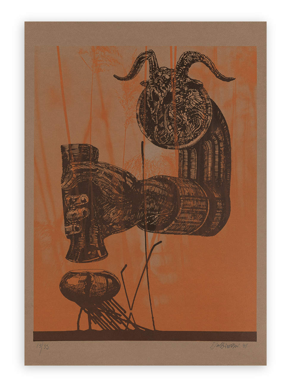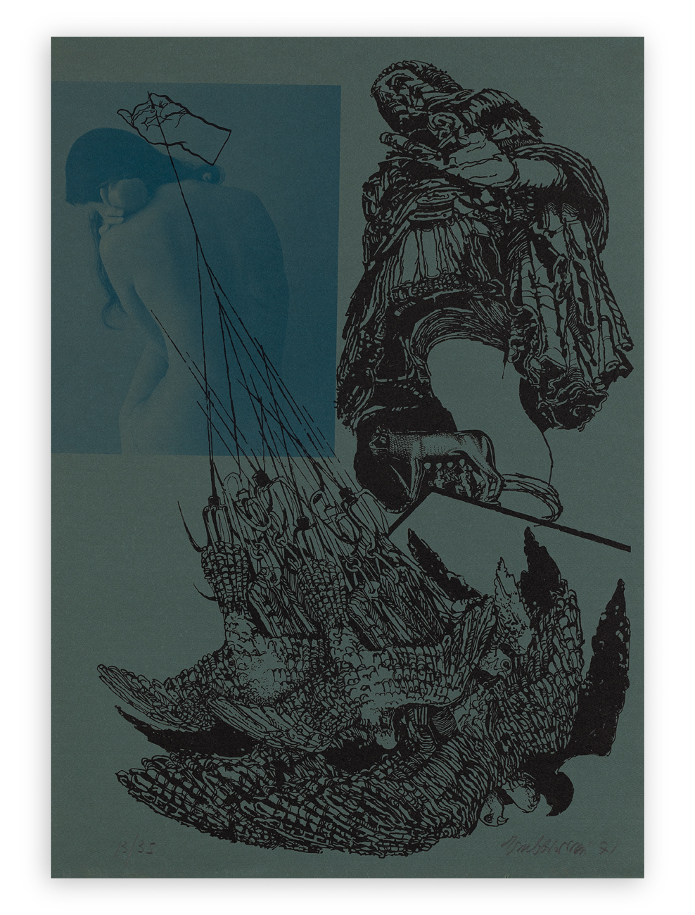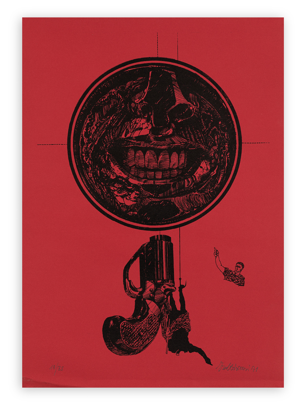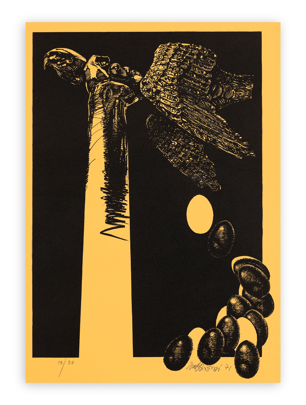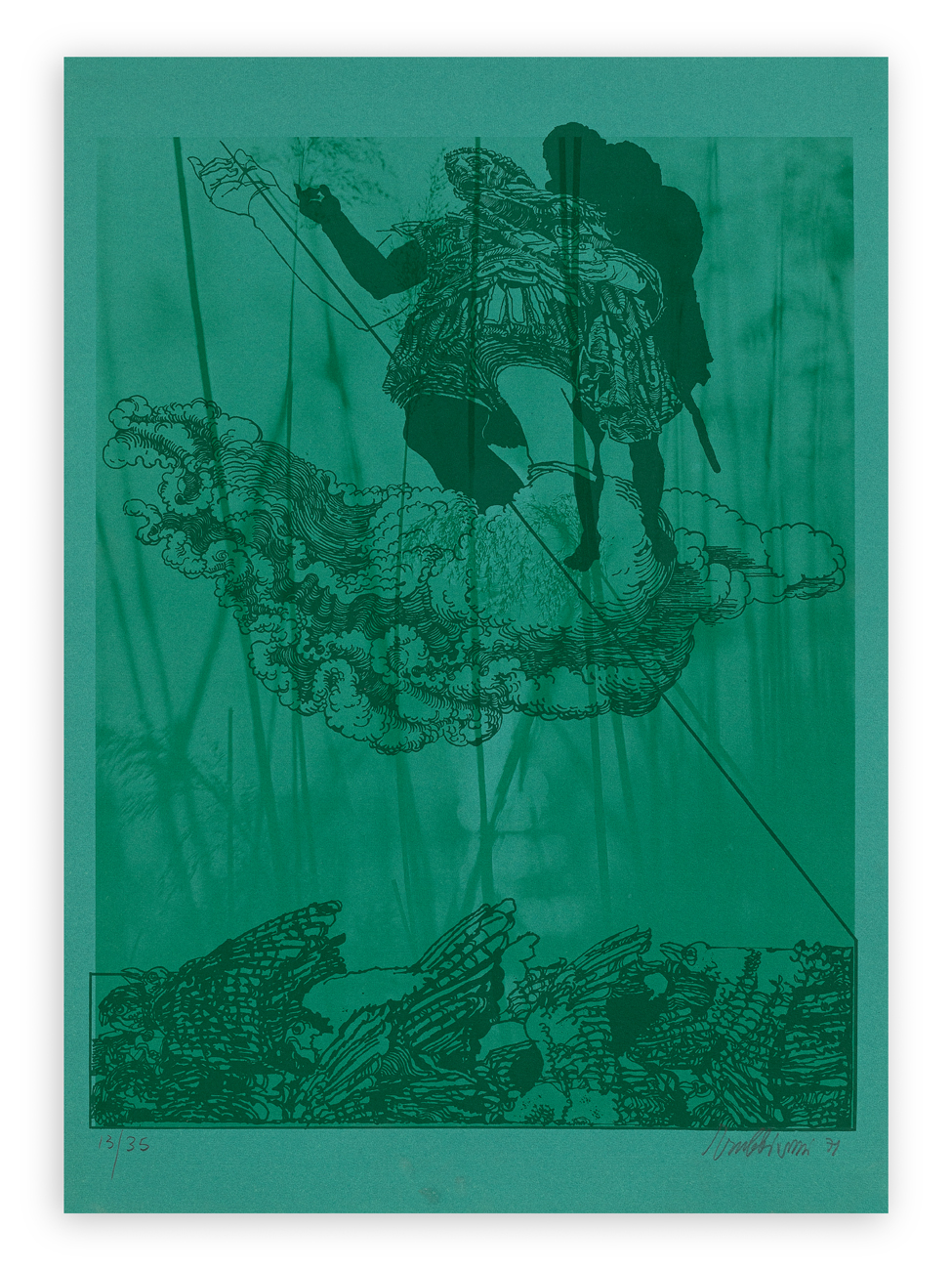 Cartella contenente poesia di Edoardo Sanguineti e 10 litografie originali di Valeriano Trubbiani, ciascuna recante firma, datazione e numerazione (Esemplari 13/35) a matita al fronte