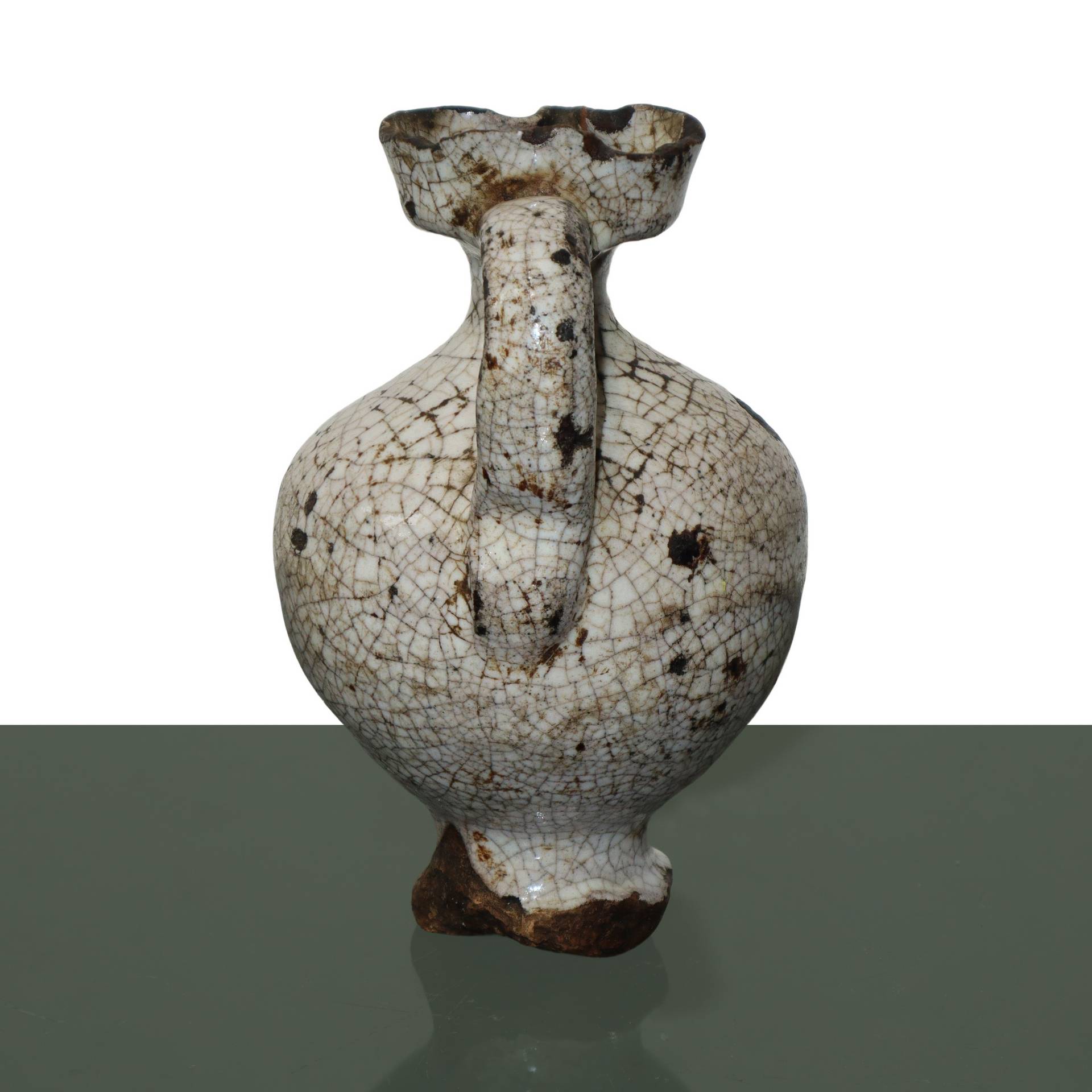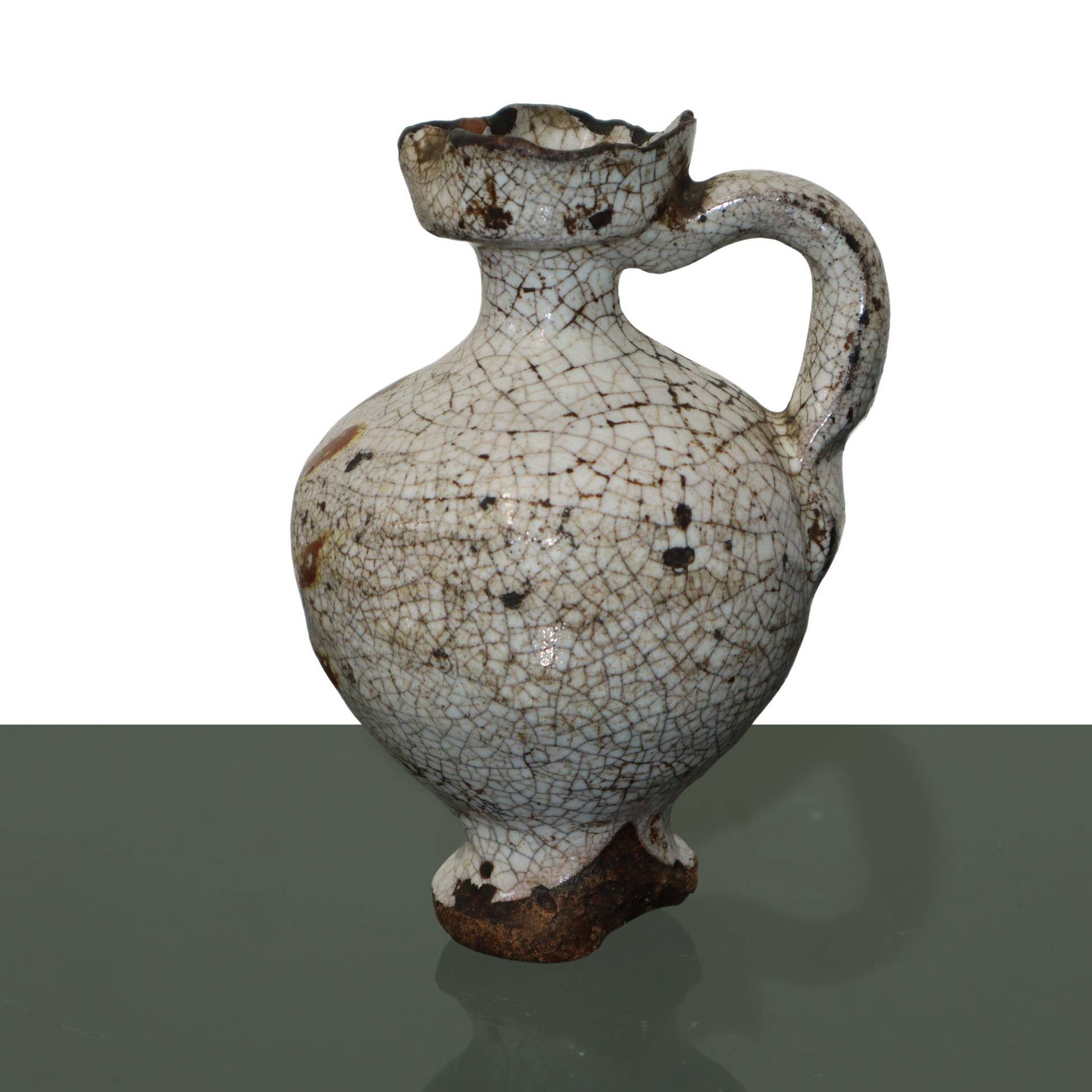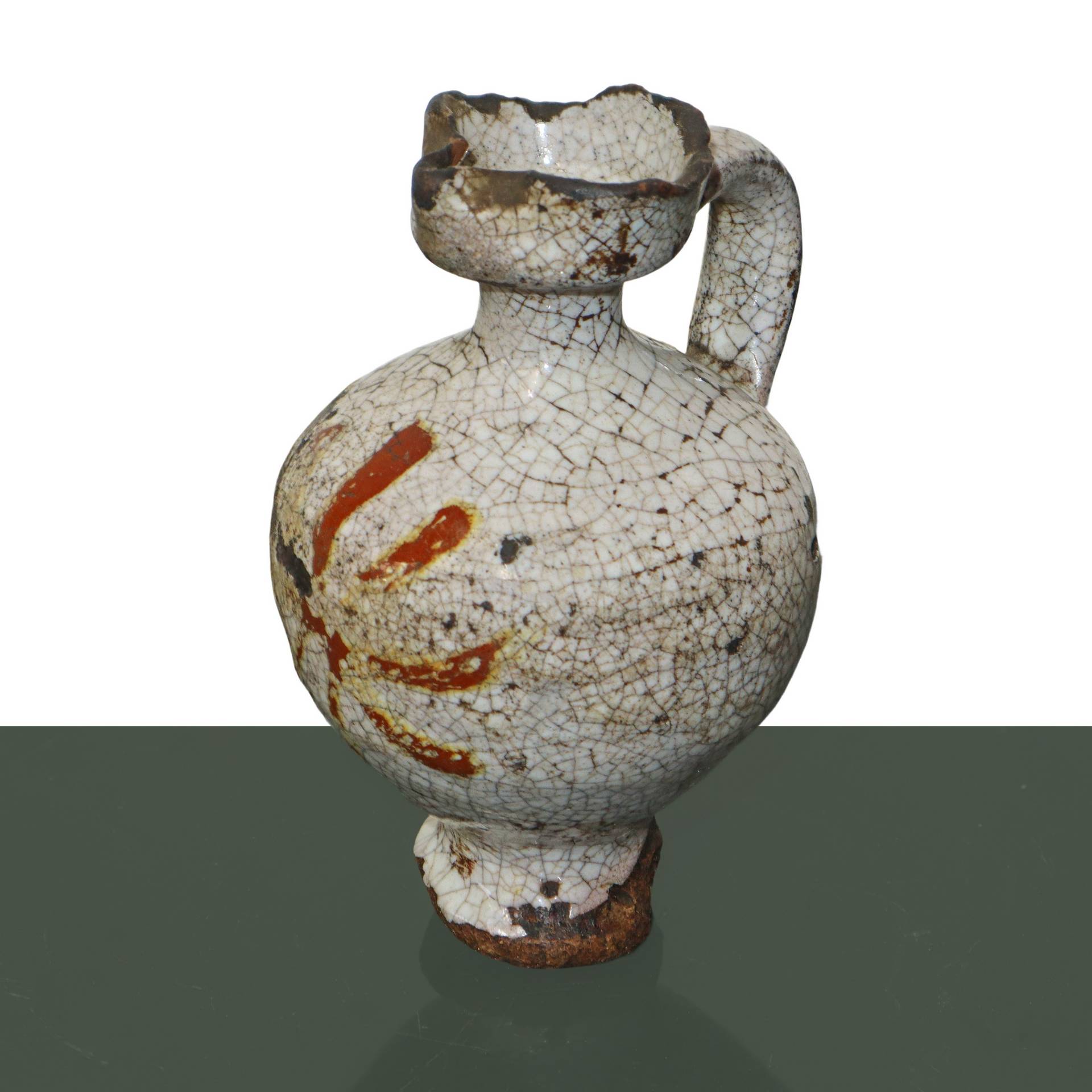 Orciolo con manico in maiolica di Caltagirone invetriata decorata e smaltata policroma in pasta bianca, 18° / 19° secolo h cm 14
