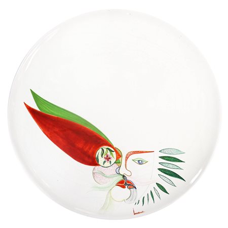 Piatto da muro con raffigurazione di volti diametro cm 54 Firmato sul fronte Insana Firmato sul fronte Insana