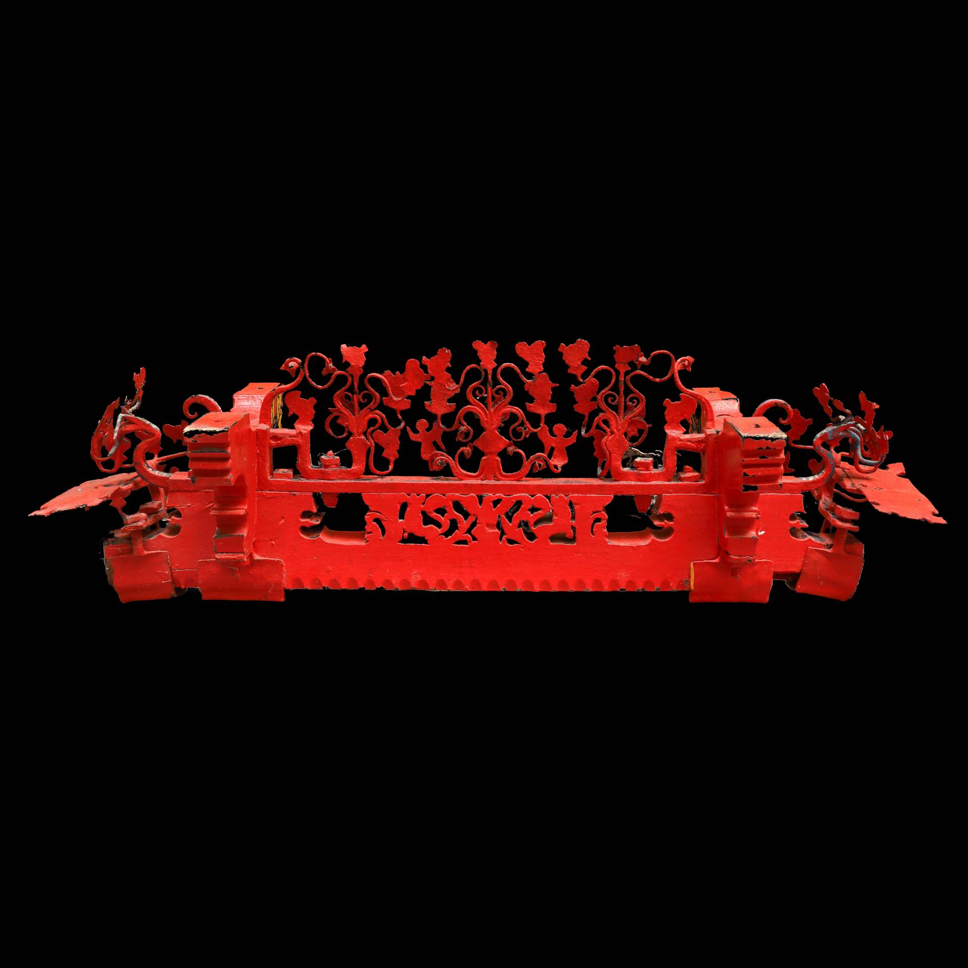 Frammento di carretto (cascia di fuso) in legno e metallo, 20° secolo H cm 35x115x35 SiciliaSicilia