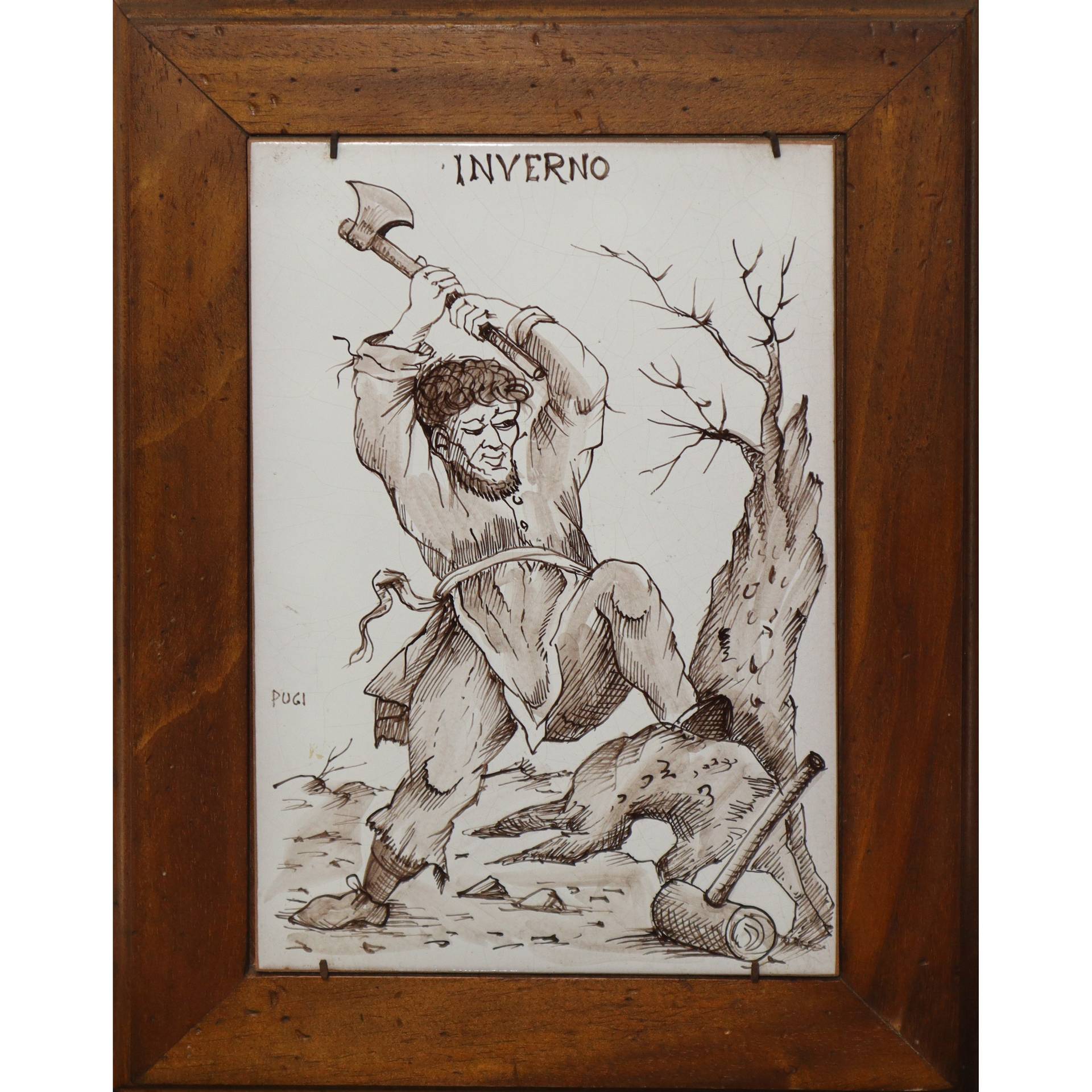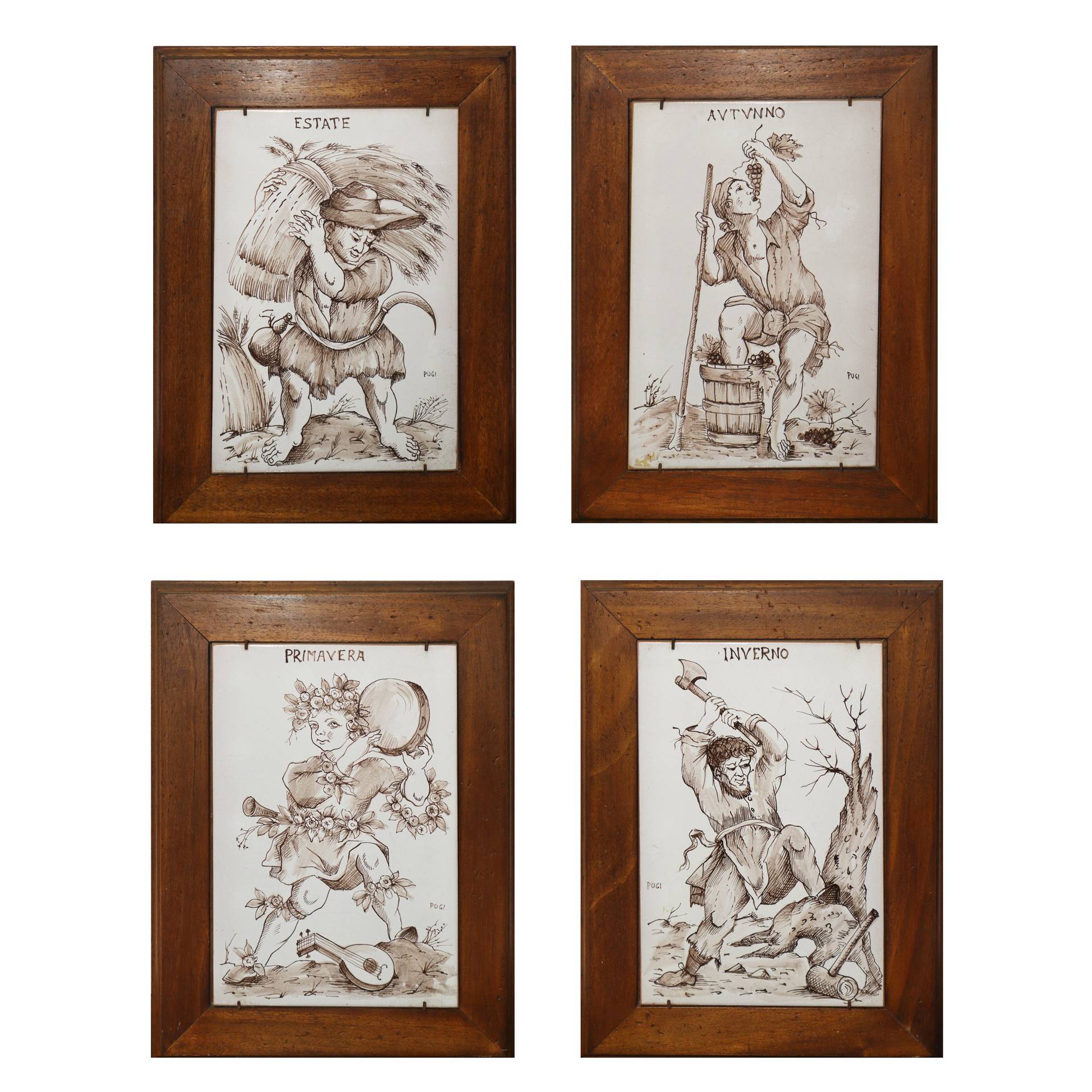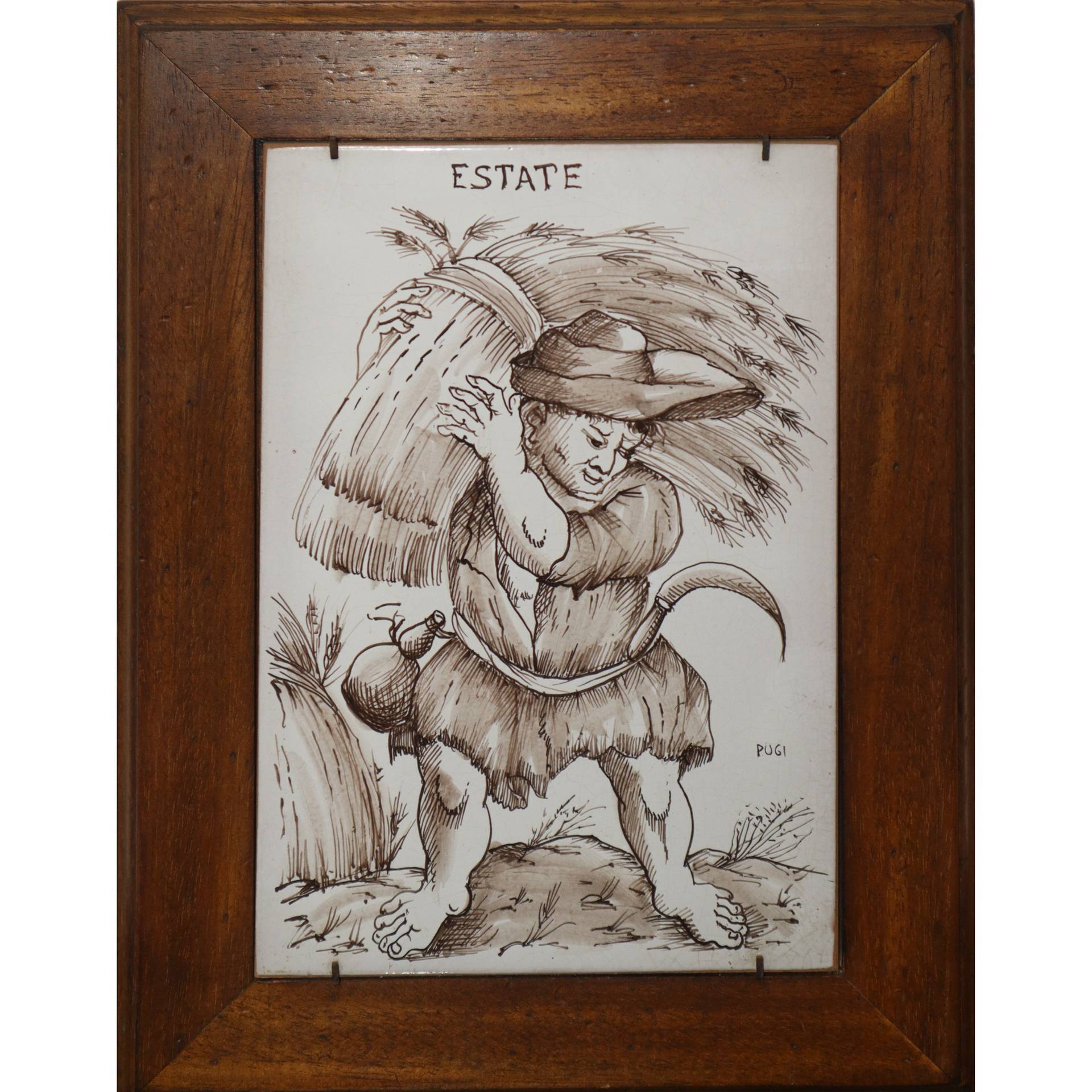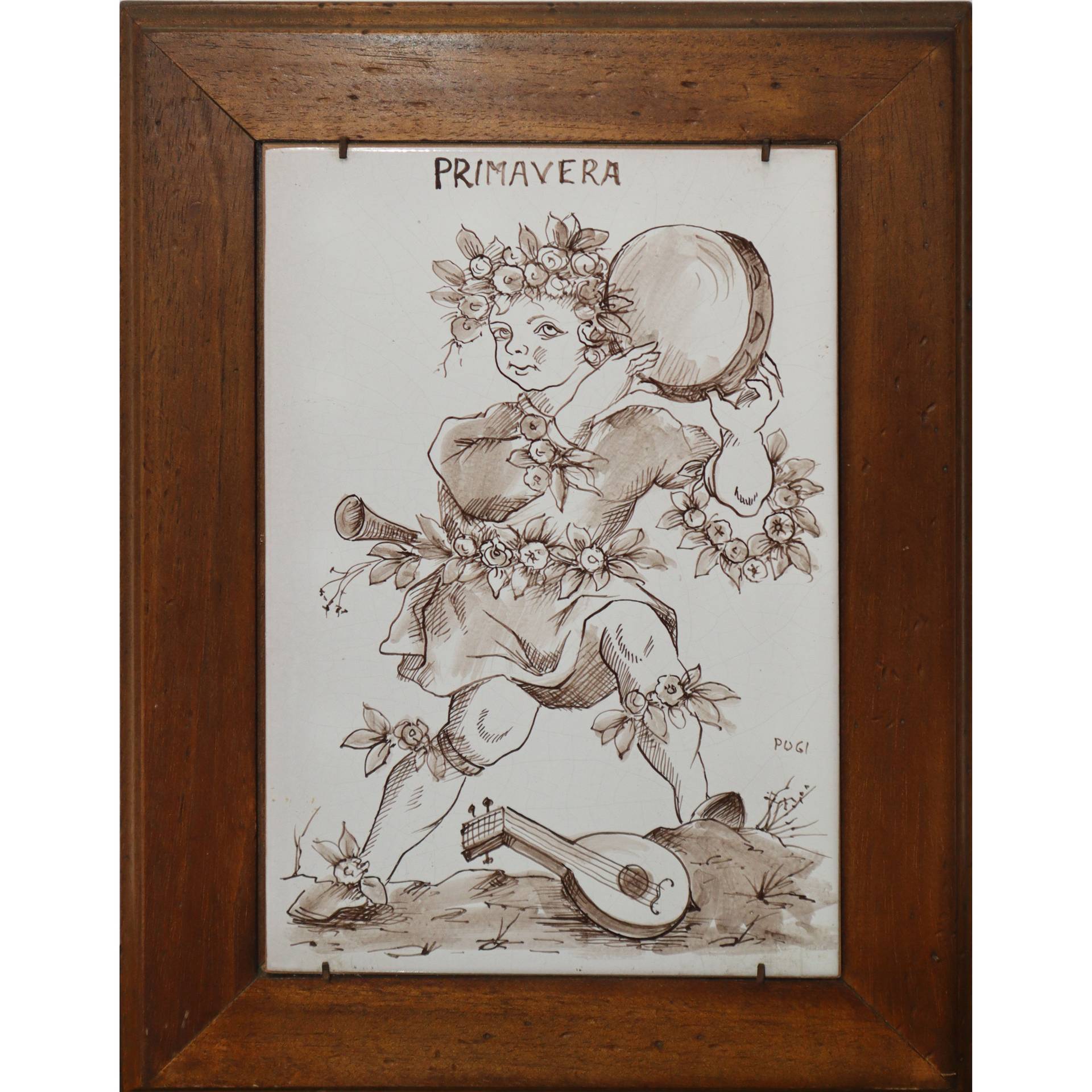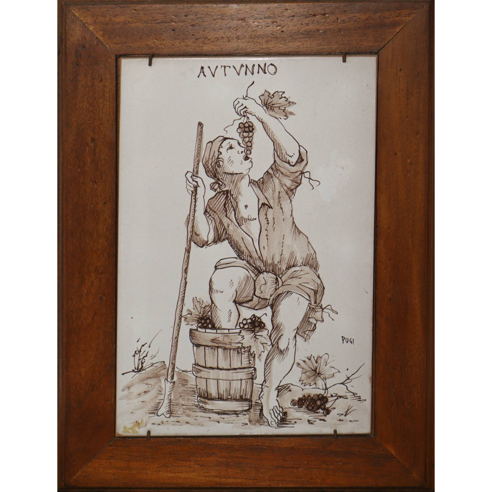 N°4 maioliche raffiguranti le 4 stagioni in cornice, 20° secolo h cm 40X30 Firmate Pugi.
