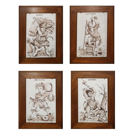 N°4 maioliche raffiguranti le 4 stagioni in cornice, 20° secolo