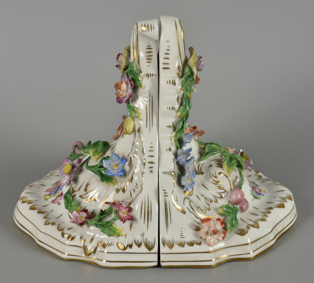 COPPIA DI MENSOLE in ceramica di Dresda decorata con motivi floreali cm 20x15