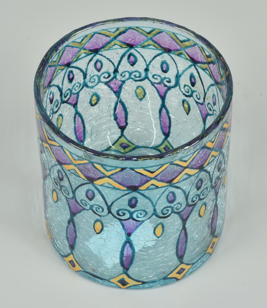 VASO IN VETRO con decorazione di gusto art deco h12 cm, diam 10 cm Italia,...