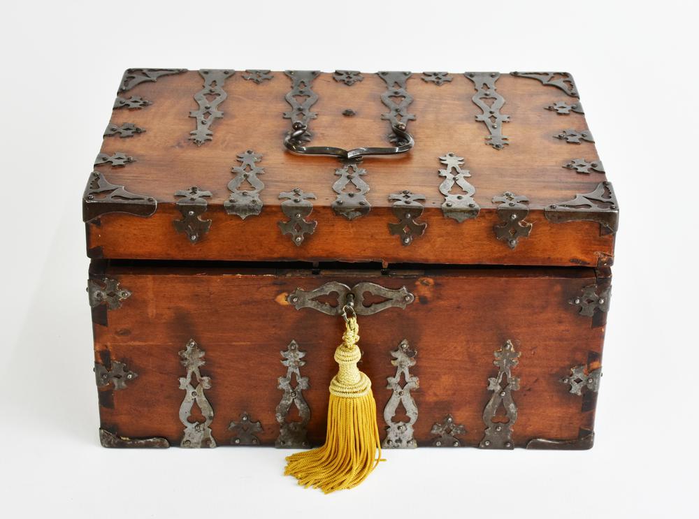 COFANETTO INGLESE, sec. XIX legno di noce con rinforzi in ferro all’interno...