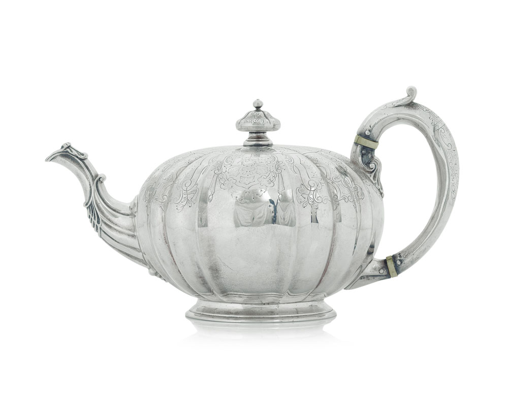 ARGENTI D'EPOCA TEIERA IN ARGENTO, LONDRA, 1855, globulare costolata con...
