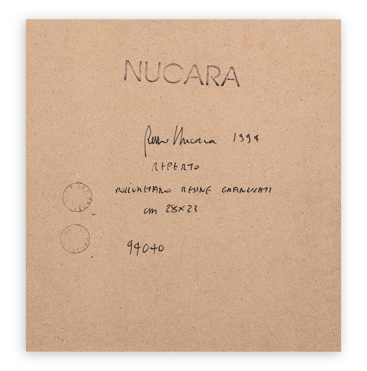 Firma, titolo, datazione, tecnica, ,misure e numero di archivio al retro