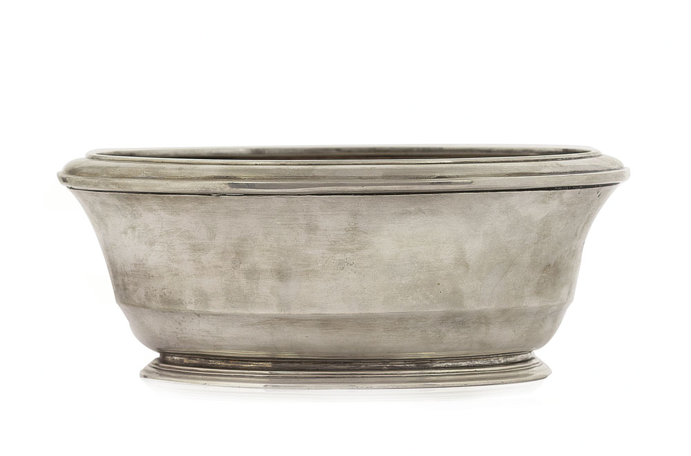 CENTROTAVOLA IN ARGENTO, GENAZZI MILANO, ANNI '70, ovale con bordi centinati.