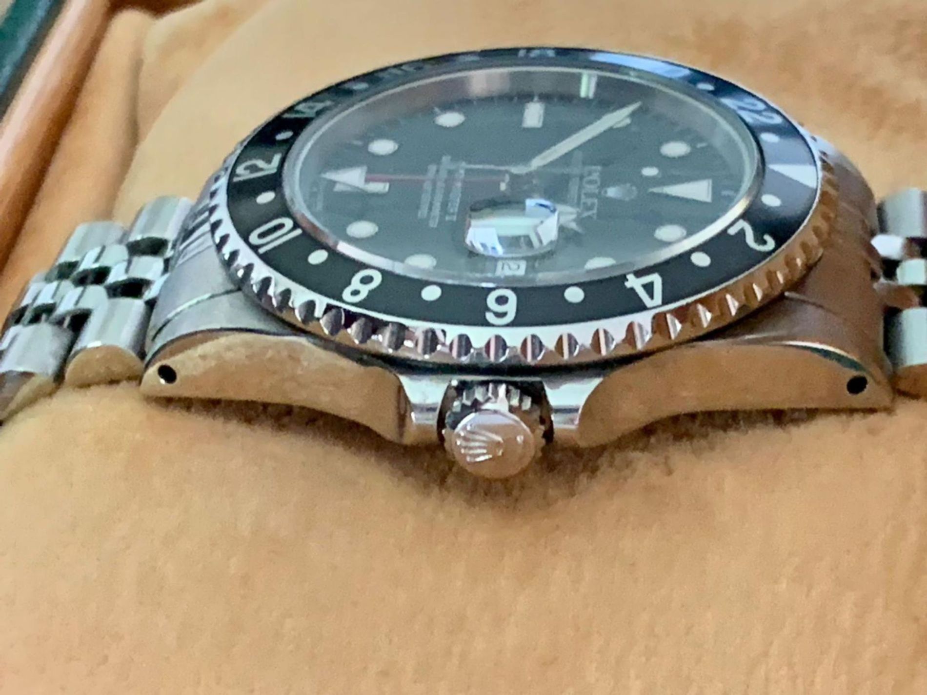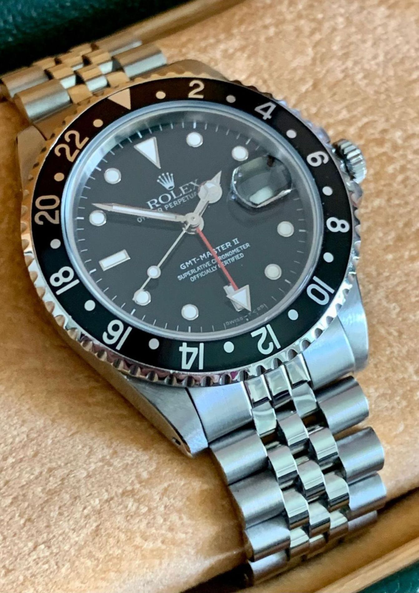 Marca Rolex Modello (Orologio) GMT-Master II Numero di referenza 16710 Carica Automatico Materiale della cassa Acciaio Materiale cinturino Acciaio Condizione Usato L'articolo presenta segni di usura lievi, come ad esempio graffi leggeri, ma non percepibili al tatto. no documenti originali Rolex, no box la scatola utilizzata solo per fotografie non in vendita Carica Automatico anni 90 Materiale della cassa Acciaio Diametro 40 mm Impermeabile 10 ATM Materiale lunetta Acciaio Vetro Vetro zaffiro Quadrante Nero Numeri sul quadrante Senza numeri Cinturino Materiale cinturino Acciaio Colore cinturino Acciaio Chiusura Déployante Materiale chiusura Acciaio Funzioni Data, GMT