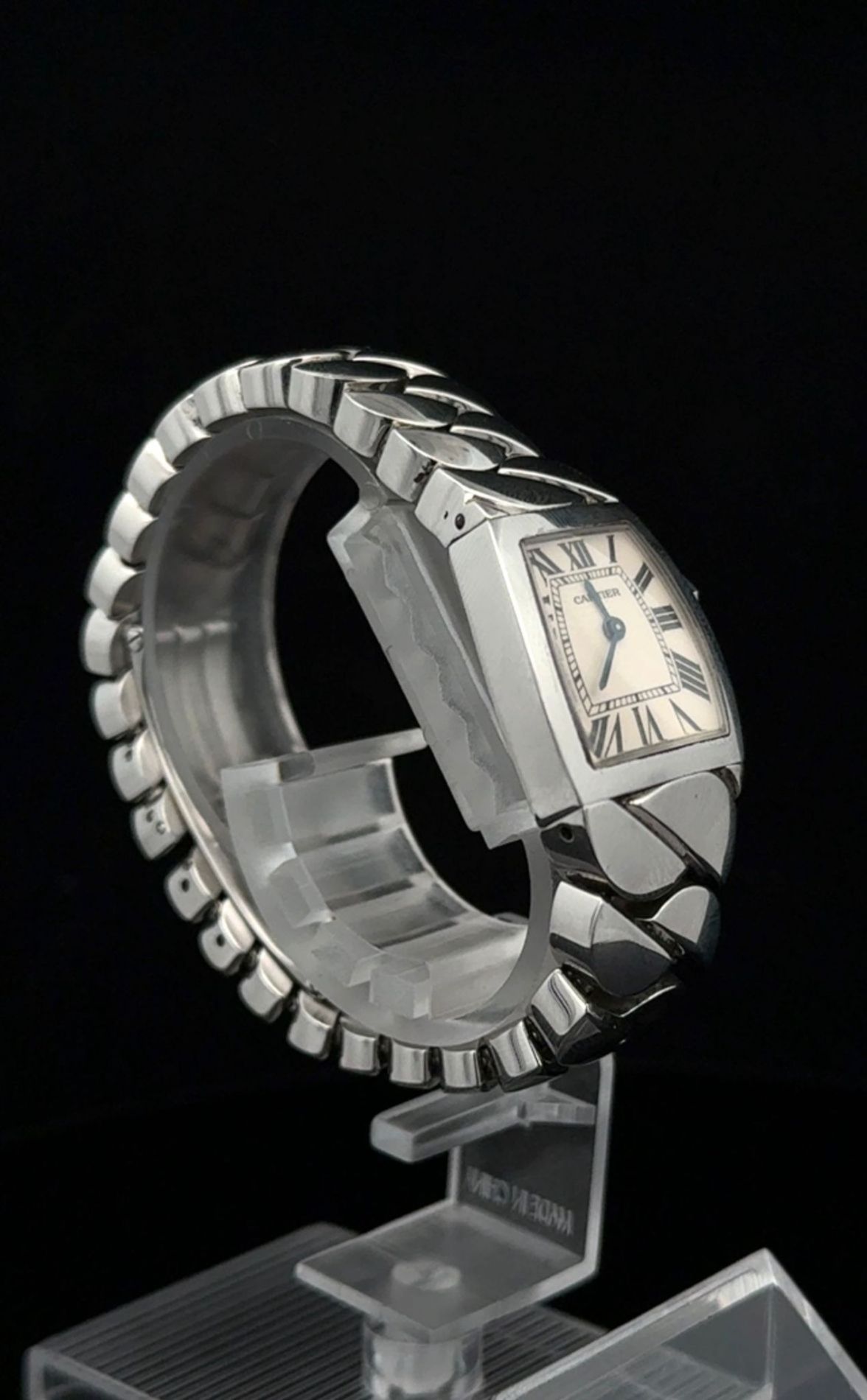 Marca Cartier Modello (Orologio) La Dona de Cartier Numero di referenza 2902 Carica Quarzo Materiale della cassa Acciaio Materiale cinturino Acciaio Condizione (Ottimo) Corredo Senza scatola originale né documenti originali, garanzia di un anno del negozio Carica Quarzo Cassa Materiale della cassa Acciaio Diametro 22 mm Cinturino Materiale cinturino Acciaio Colore cinturino Acciaio Materiale chiusura Acciaio
