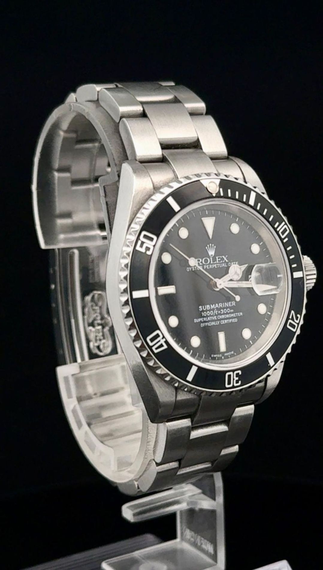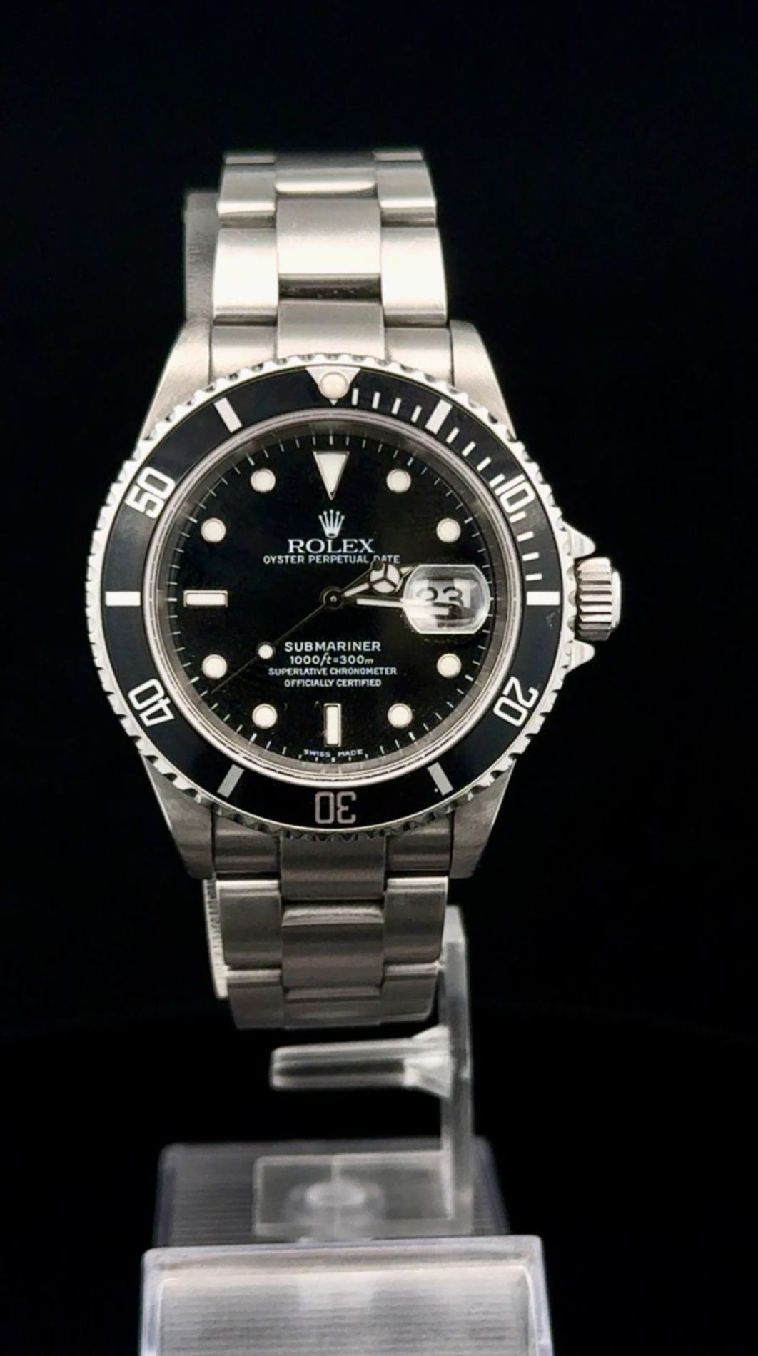 Marca Rolex Modello (Orologio) Submariner Date Numero di referenza 16610 Carica Automatico Materiale della cassa Acciaio Materiale cinturino Acciaio Anno 2005 Corredo documenti originali, no box la scatola è utilizzata solo per fotografie non in vendita Materiale della cassa Acciaio Diametro 40 mm Impermeabile 30 ATM Materiale lunetta Acciaio Vetro Vetro zaffiro Numeri sul quadrante Senza numeri Cinturino Materiale cinturino Acciaio Colore cinturino Acciaio Chiusura Déployante Materiale chiusura Acciaio Cassa no fori