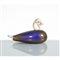 Figura di anatra in vetro sommerso blu con inclusioni oro, collo, testa e coda in vetro incolore con inclusioni oro. Etichetta di produzione.