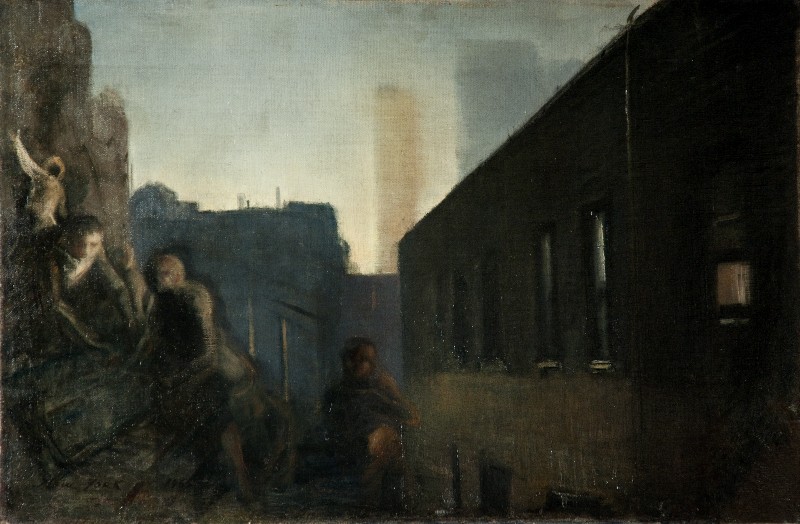 Pietro Annigoni (Milano 1910 - Firenze 1988) OPERAI A NEW YORK, 1965 Olio su tela, cm. 60x92 Firma, data e titolo in basso a sinistra. Autentica "dell'Archivio dell'Opera di Pietro Annigoni", su foto con Archivio n° 136, con firme del comitato.