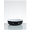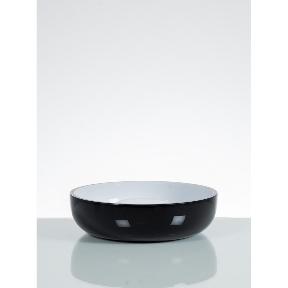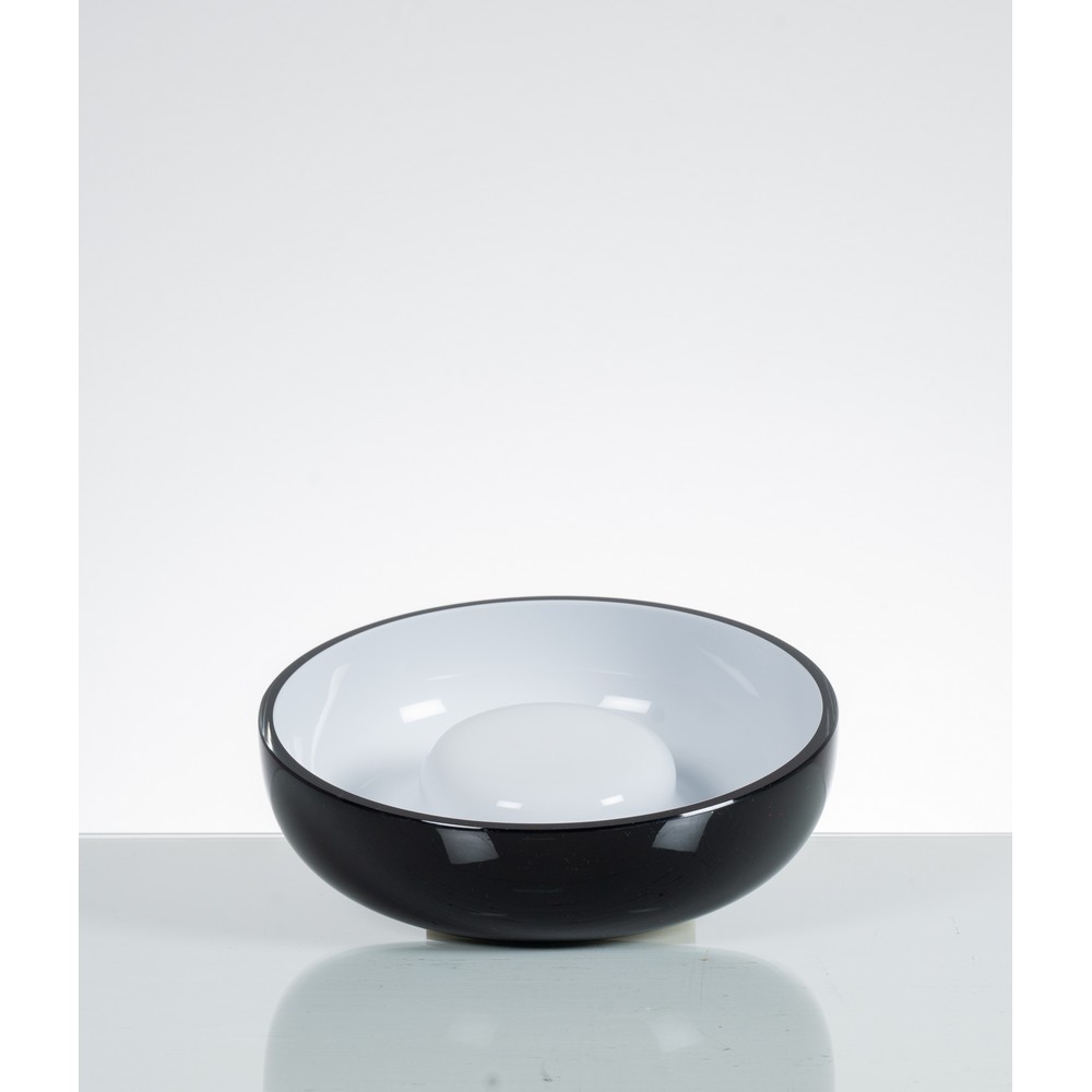 Svuota tasche in vetro incamiciato nero e bianco, corpo circolare con volume semisferico centrale.