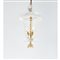 Lampada a sospensione a tre luci, corpo a lanterna in vetro incolore con diffusore conico lavorato a piccole bugne, decoro superiore ad ondine, struttura in metallo dorato.