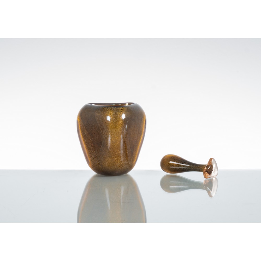 Ciotola con pestello in vetro incamiciato, incolore, marrone, bianco e foglia oro.
