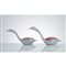 Due sculture di cigni in vetro lattimo decorato con filamenti di vetro rosso. Etichetta di produzione e firma a graffio.