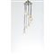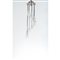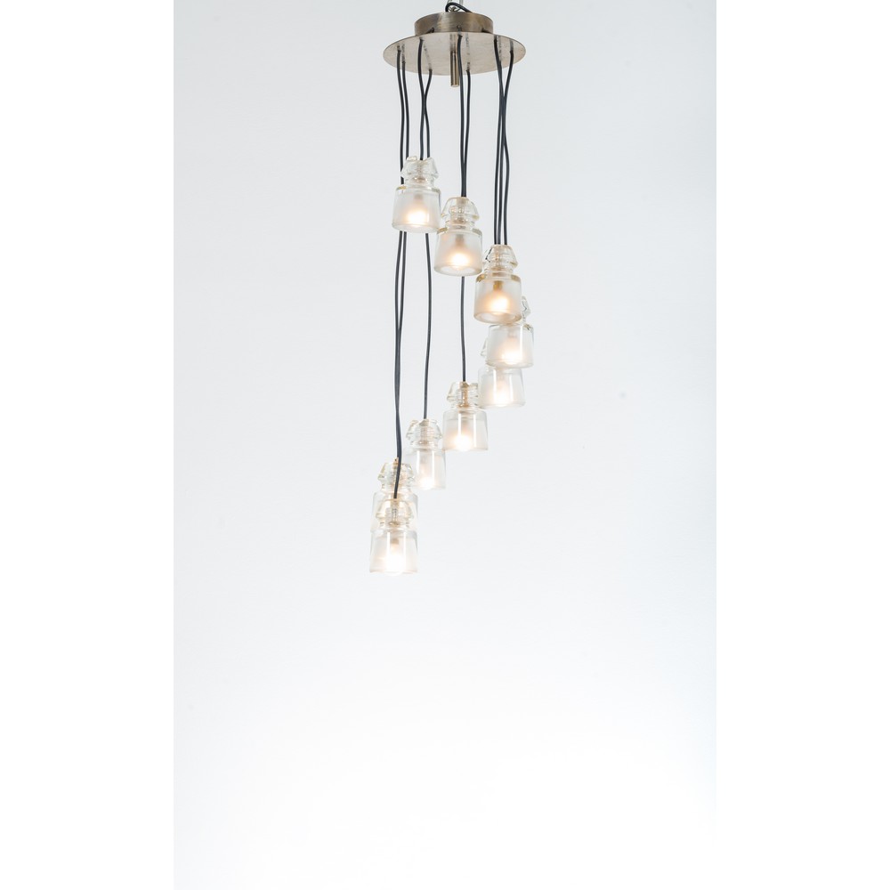 Lampada a sospensione a nove luci, struttura in metallo cromato con diffusori in vetro incolore a stampo ricadenti a spirale.