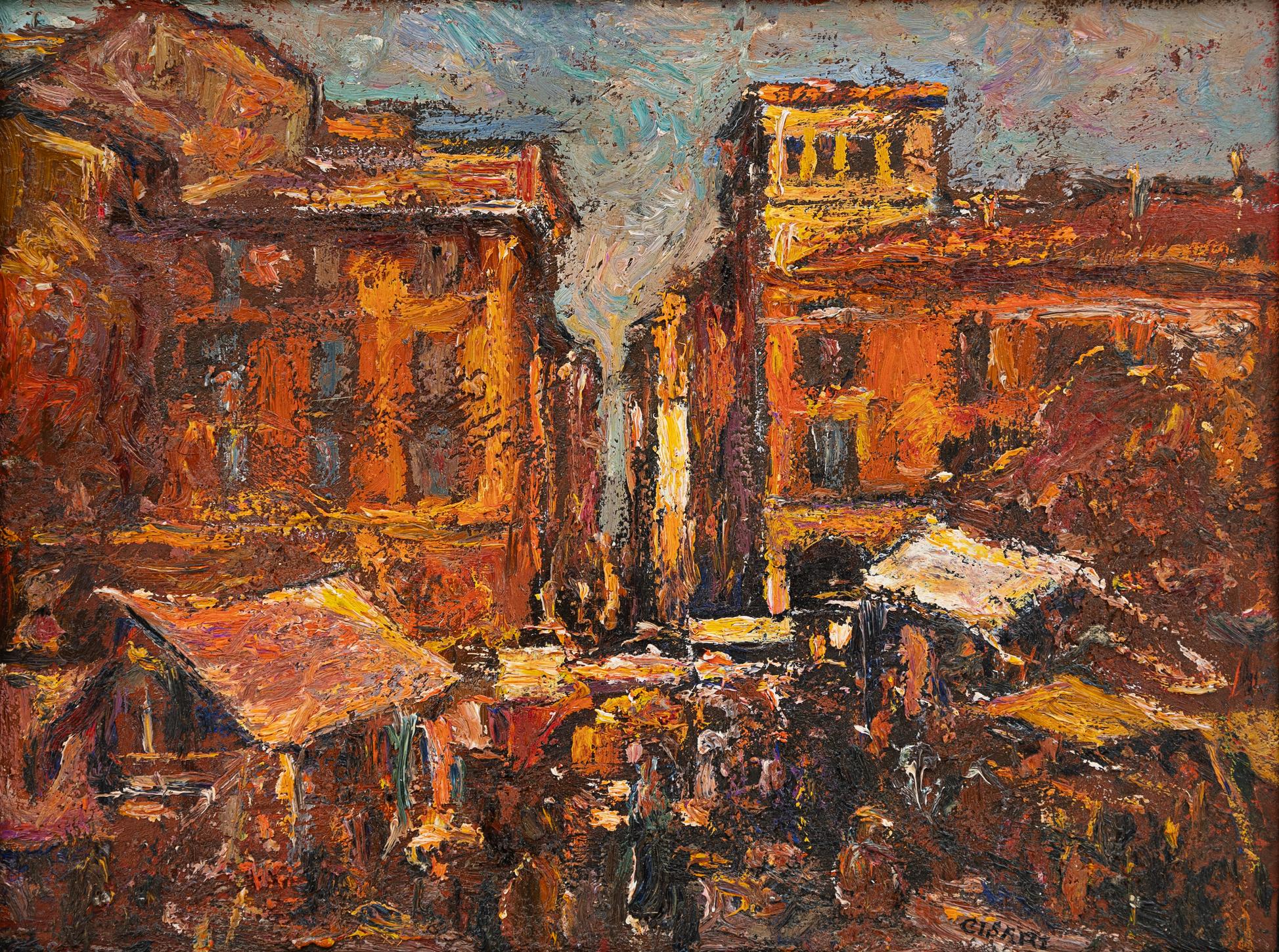 Giulio Cisari - Piacenza ''Il mercato'' 1943 - Como 1892 - Milano 1979 - Olio su cartone cm 29x40