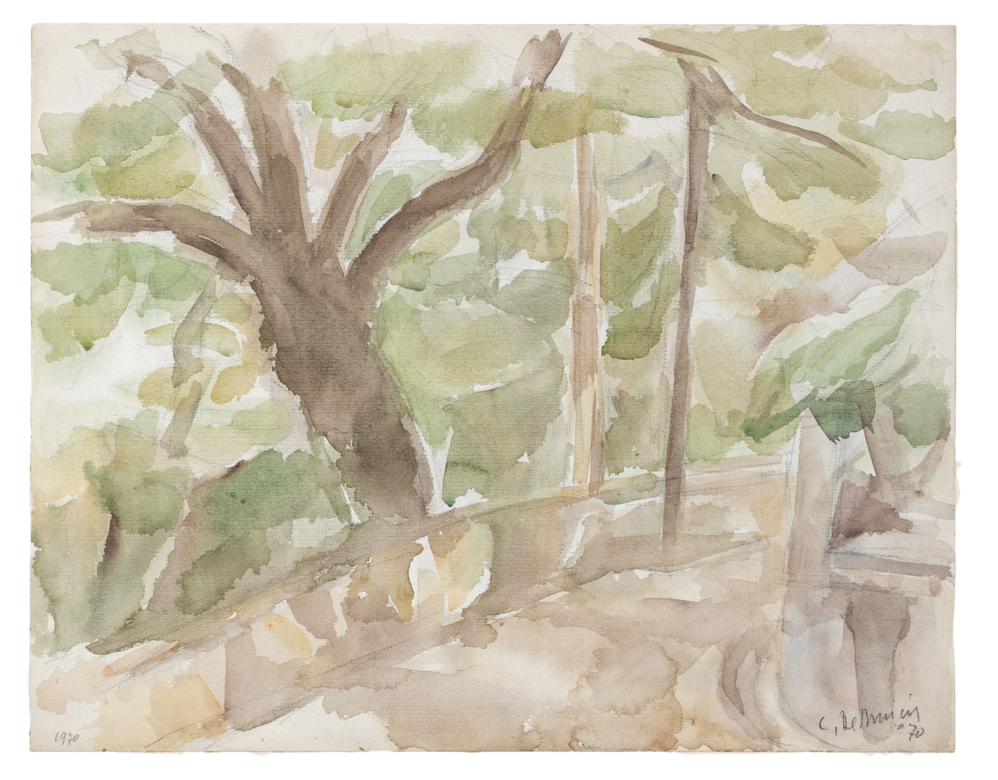 CRISTOFORO DE AMICIS(1902 - 1987)L'albero e il muretto1970Acquerello e matita su carta applicato su carta40 x 51 cmFirmato e datato in basso a destraOpera accompagnata da autentica su fotografia a cura dell'Archivio Cristoforo De Amicis firmata da Piero De Amicis, MilanoPROVENIENZA:Collezione privata, MilanoBIBLIOGRAFIA:E. Introzzi, P. De Amicis (a cura di), Cristoforo De Amicis. Catalogo Generale, Ferrari Edizioni, Clusone, 2003, n. 407, pag. 262 (ill.)