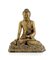 BUDDHA SEDUTO IN LEGNO DORATO CON APPLICAZIONI, BIRMANIA, XIX SECOLO, in posizione simbolica Sakiamuni, con gesto della chiamata a testimone della terra; usure.
