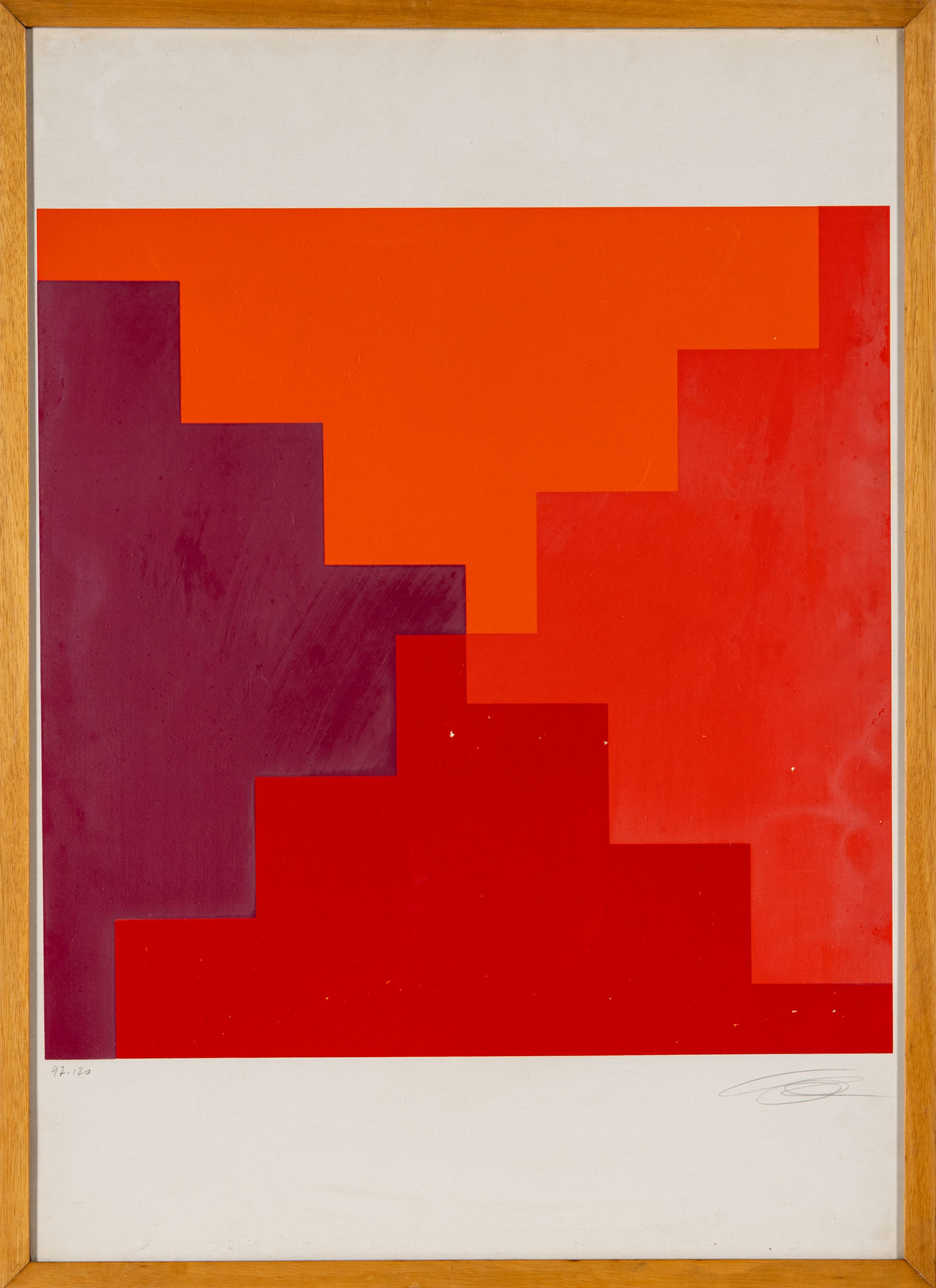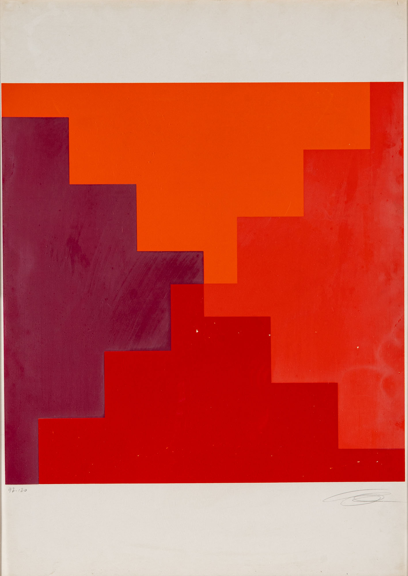 RICHARD PAUL LOHSE(1902 - 1988)Vier gestufte Flächen in Rot1971Serigrafia, es. 97/12070 x 50 cmFirmata a matita in basso a destra e numerata in basso a sinistraPROVENIENZA:Collezione privata, MIlano