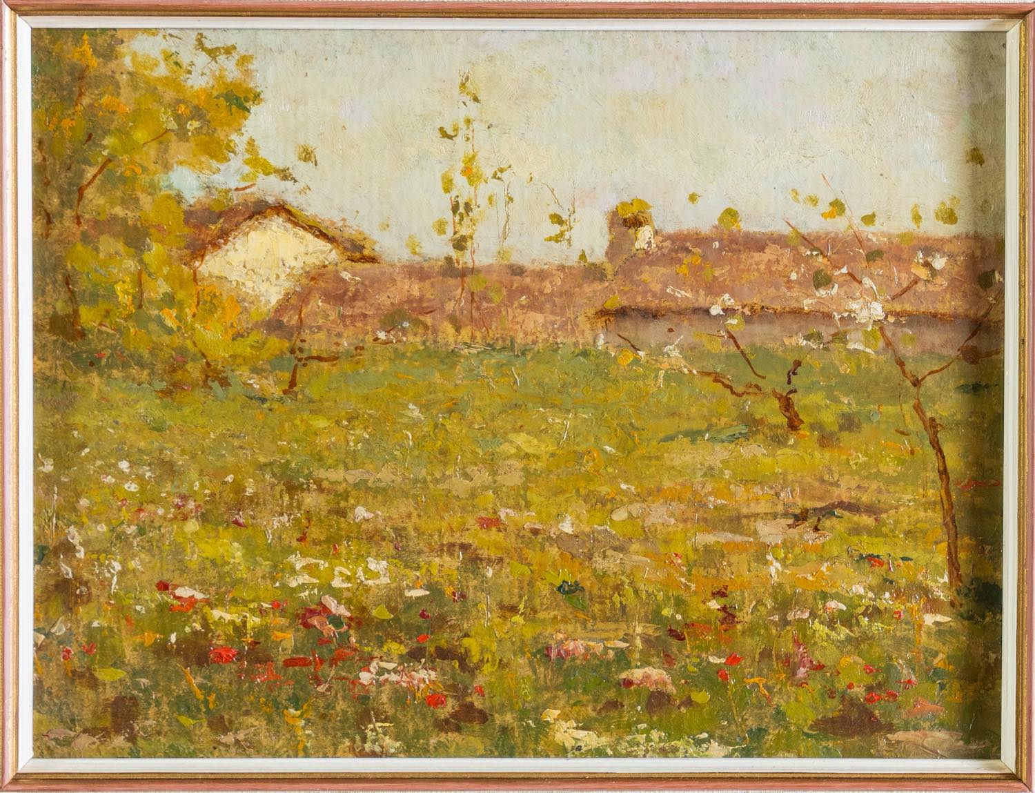Olio su cartone, firmato al retro, H cm 22x29.5 - con cornice H cm 43x50. Provenienza: Collezione Baldi; Collezione Privata - Bologna.