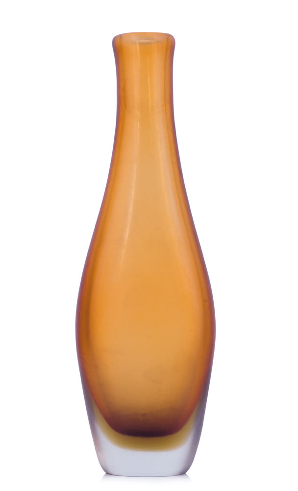 VASO IN VETRO SOMMERSO E INCISO, VENINI, P.VENINI, ANNI '60, apparentemente non firmato; etichetta Caliari-Venini Torino sul fondo.