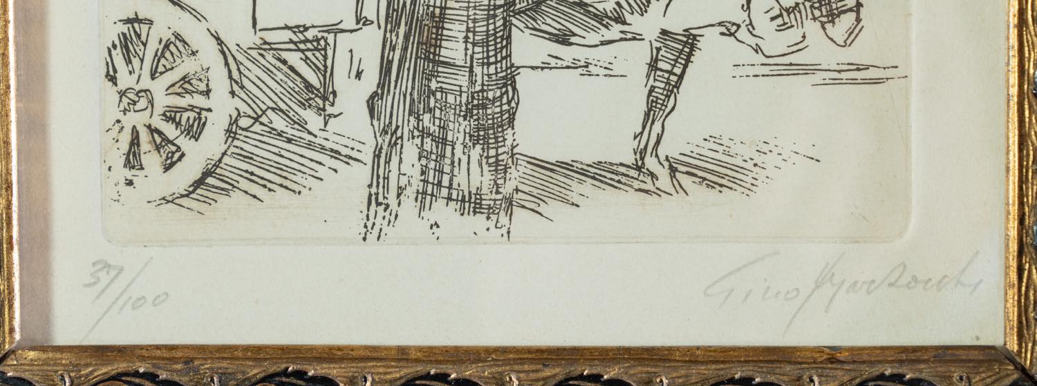 Incisione su carta, firmata in basso a destra, numero di tiratura in basso a sinistra 37/100, Lastra H cm 19x14 - con cornice H cm 26.5x20.5.