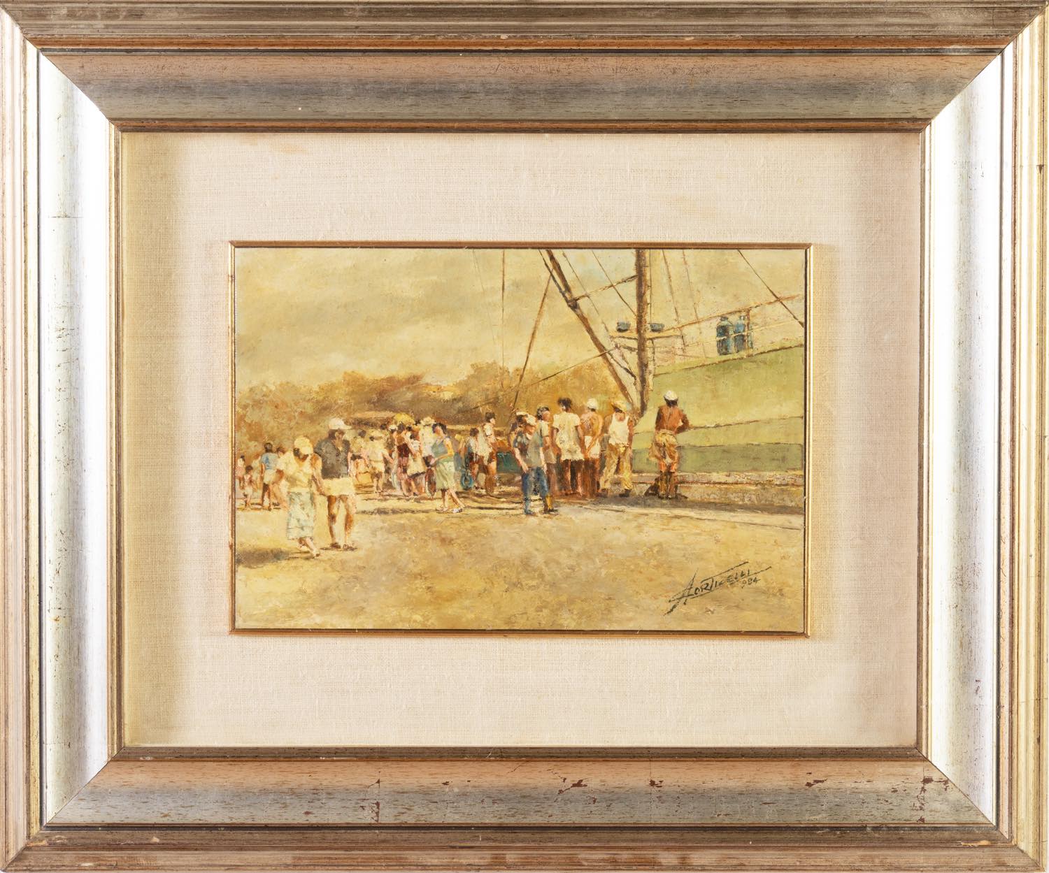 Athos Corticelli (Bologna 1911-1990), “Porto Garibaldi - L’arrivo del peschereccio”, 1984.