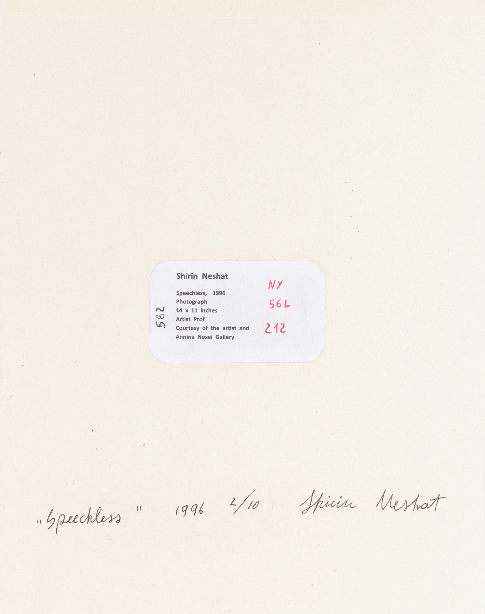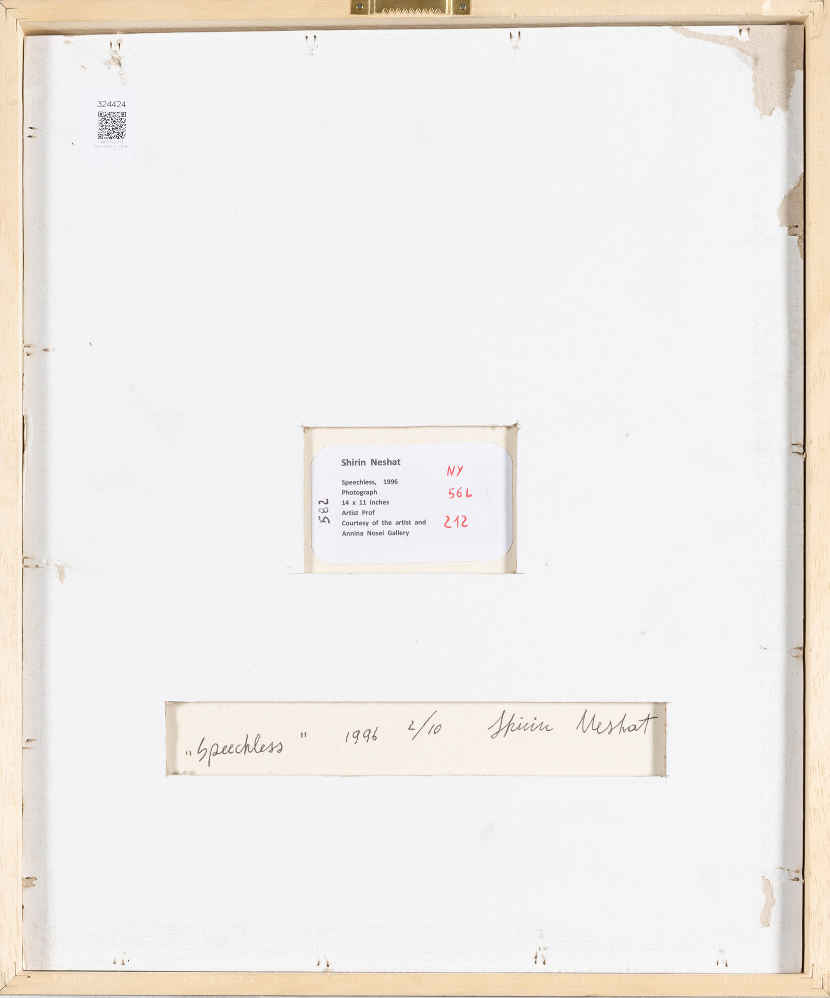 L'autenticità dell'opera è stata confermata dallo Studio Shirin Neshat., Annina Nosei Gallery, New York