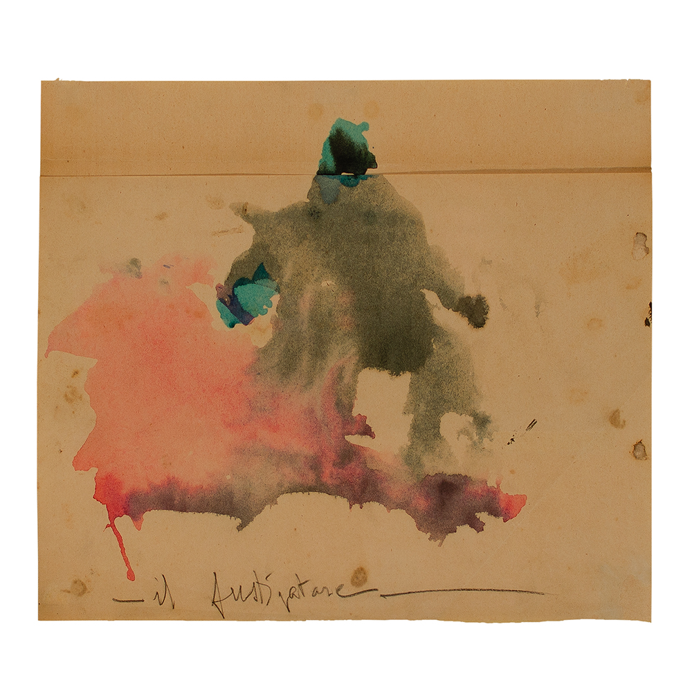 guazzo su due fogli di carta sovrapposti, misure complessive cm 26,5x30.