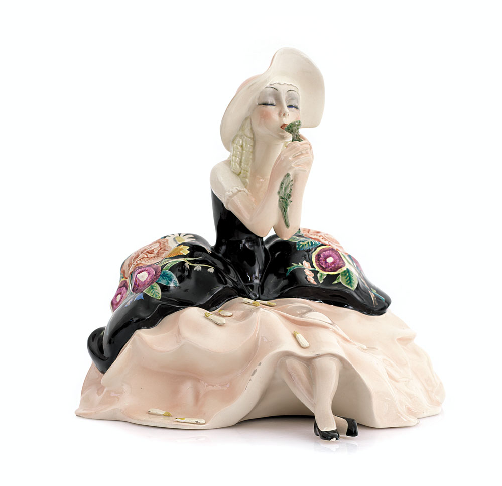 FIGURA "M'AMA...NON M'AMA" IN CERAMICA, TORINO, ESSEVI DI SANDRO VACCHETTI, ANNI '30, decoro policromo; lievi scheggiature.