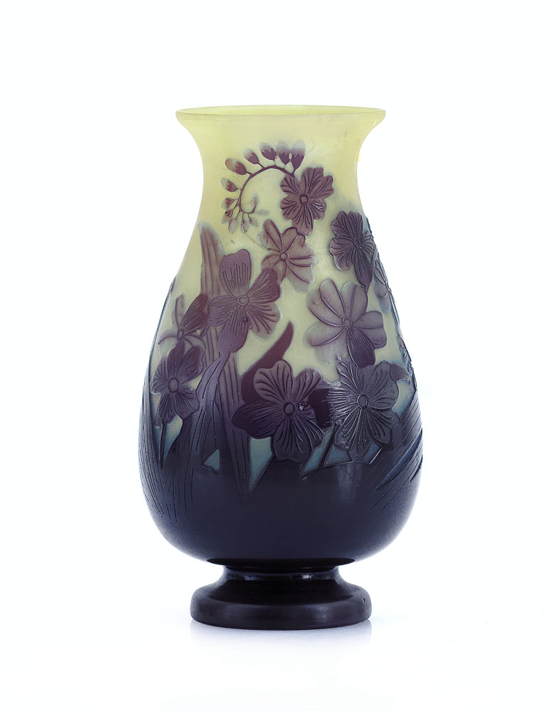 Lot 491 | GALLE' VASO IN VETRO DOPPIO, GALLE', 1900 CA., ovoidale con decoro a begonie...