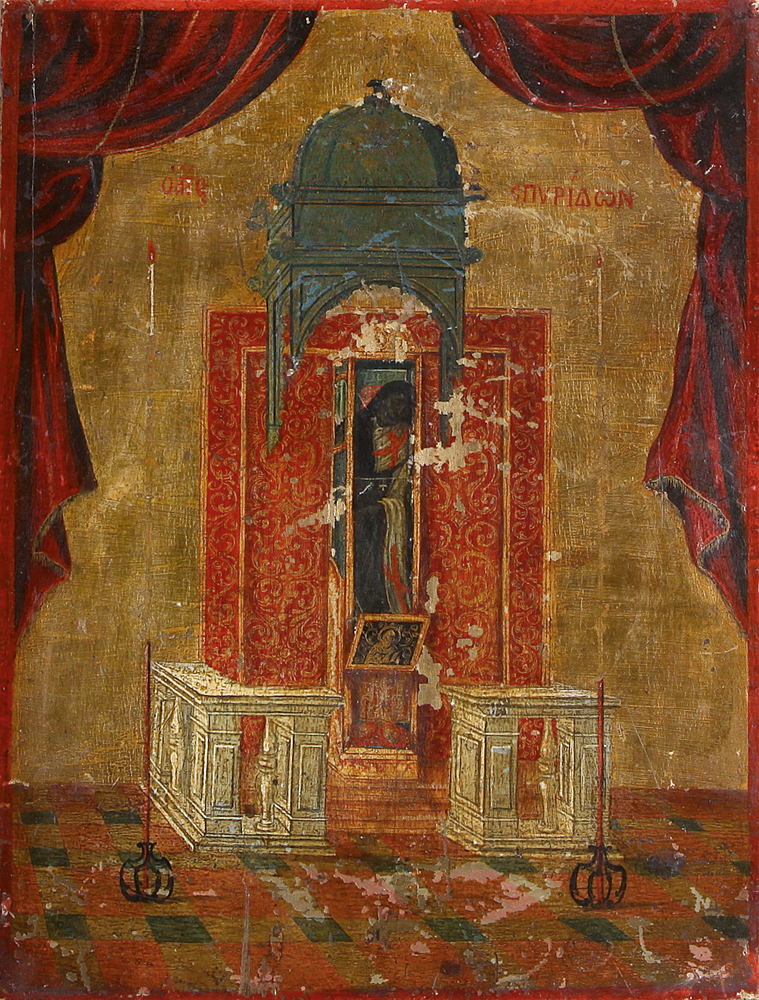 ICONA GRECA DEL XIX SECOLO Altare con la VergineTempera all'uovo su tavola,...