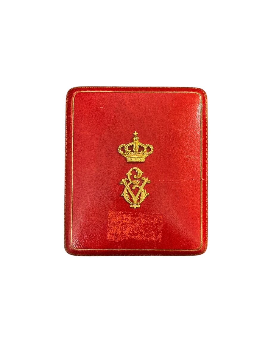 Con mignon in confezione. Insegna di cavaliere ufficiale. In bronzo dorato e smalti. Savoia - Vittorio Emanuele III.